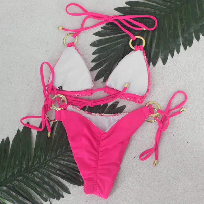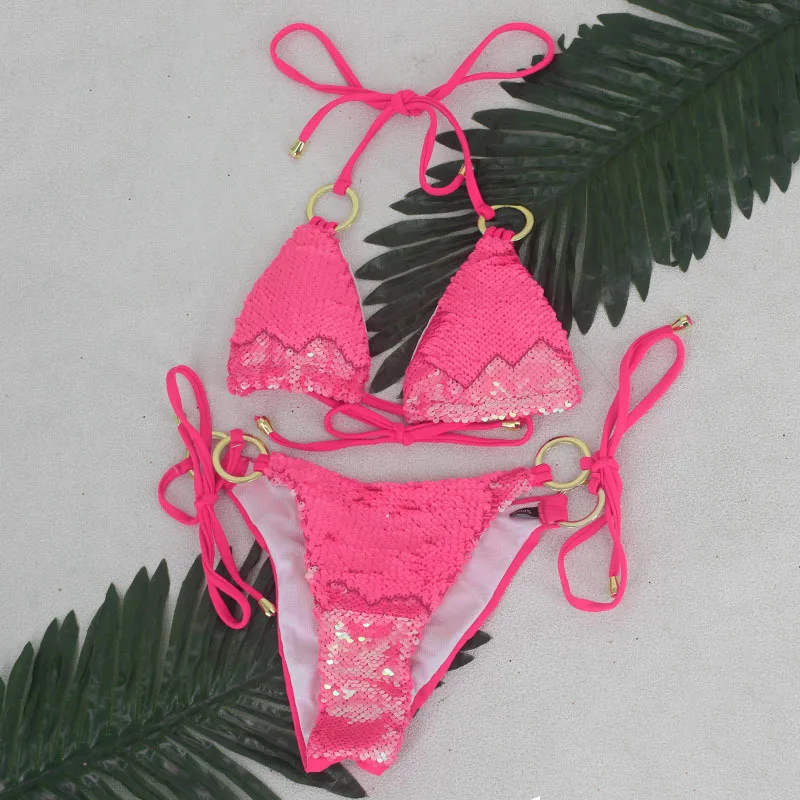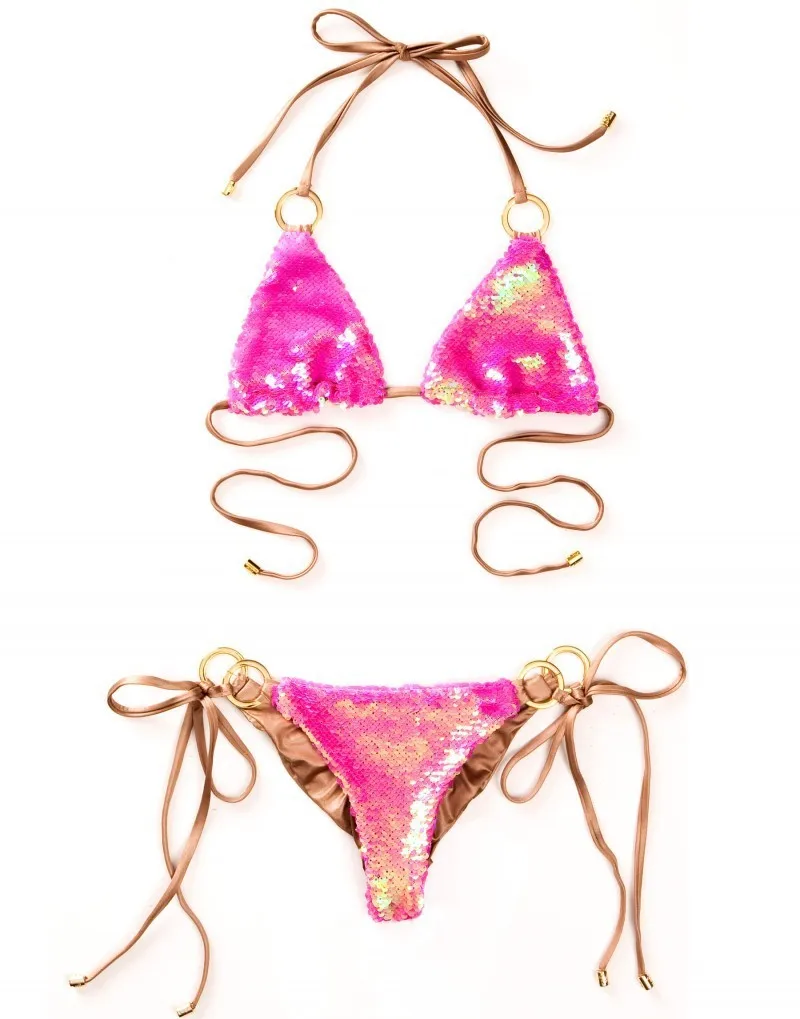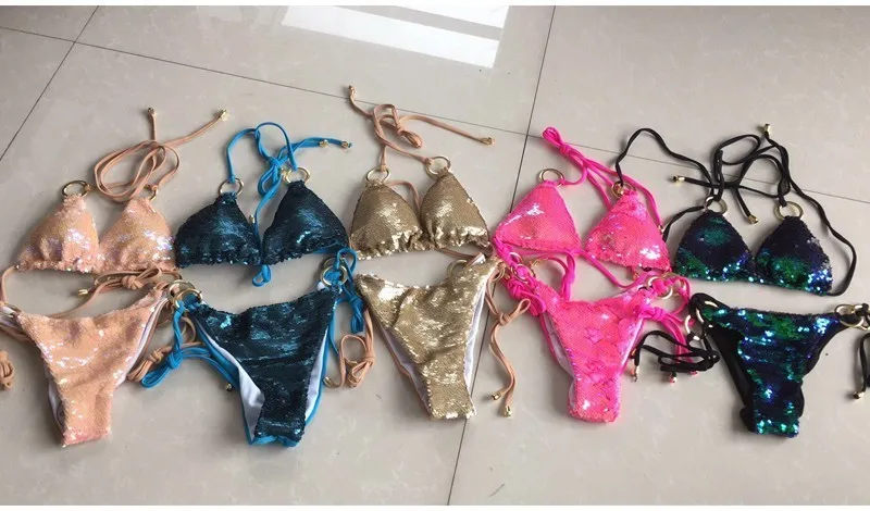 FREE SHIPPING 2019 New Reversible Sequins 2 Piece Set Halter Beach Wear Solid Summer Crop Top And Short Sexy Two Piece Suits JKP1911 |