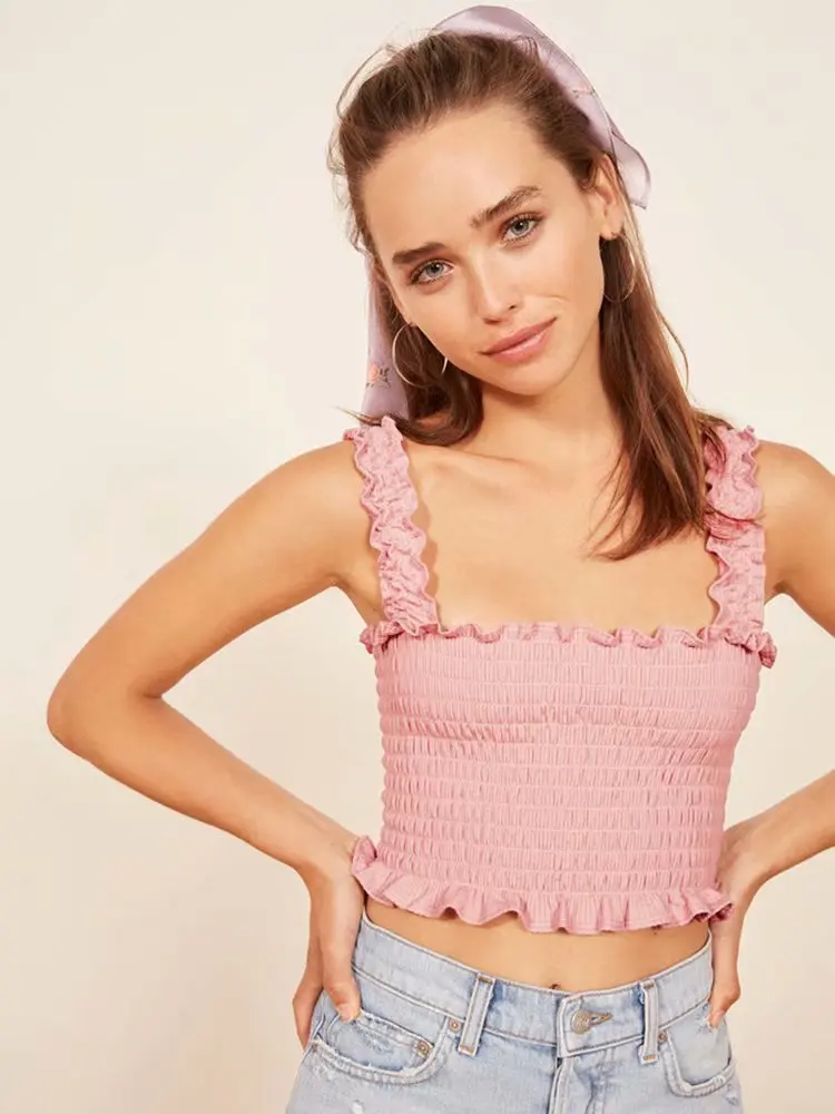FREE SHIPPING 2019 Ribbed Cami Top Ruched Tank Top JKP1477