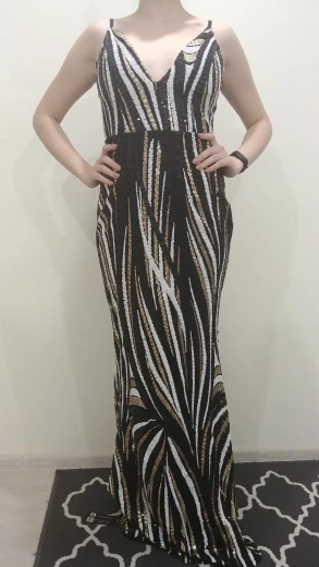 Very beautiful dress, sewn qualitatively, and looks expensive. My parameters are 90-70-90 cm, the size m is a little loose in the waist, but in the chest and hips is good. I recommend this dress and this store!