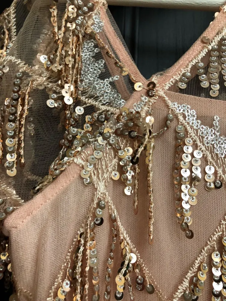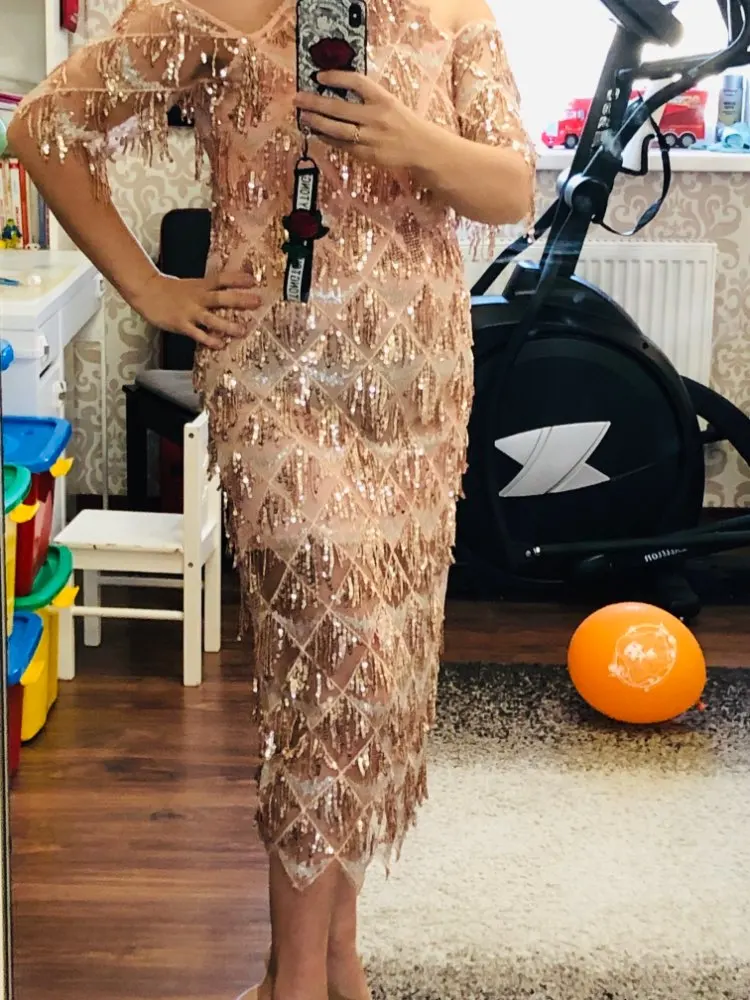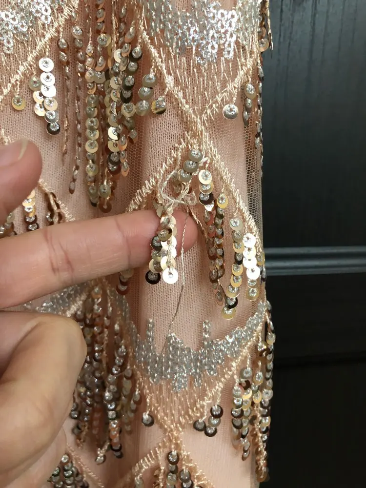 I saw the dress accidentally and it caught me looks chic on the model and i decided to try especially there is an occasion. Ordered for shares at the end of march for 2 weeks came to mo. I took it at the post office and immediately opened the package very interesting to me what it was. The dress greeted me with a cloud of sequins but it did not kill him and all. I tried it at home and was very happy i was straight model of the girl in this dress all autumn satisfied. After fitting took off and began to consider it a little upset a lot of hangings sewn to other cells and strange threads sticking out had to work a little over the dress with scissors and everything is super. I recommend the store sent a quick and a discount coupon gave.