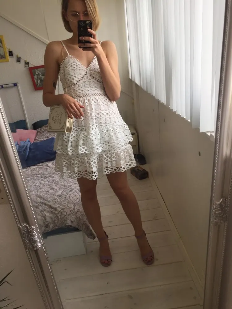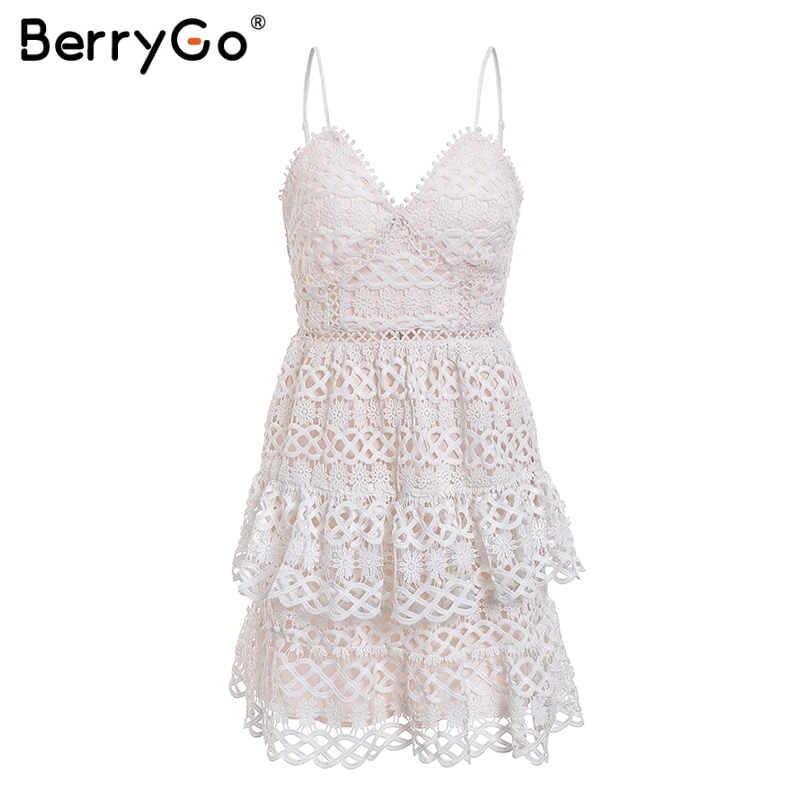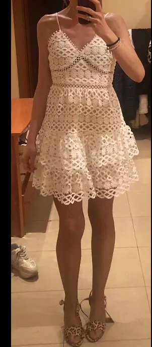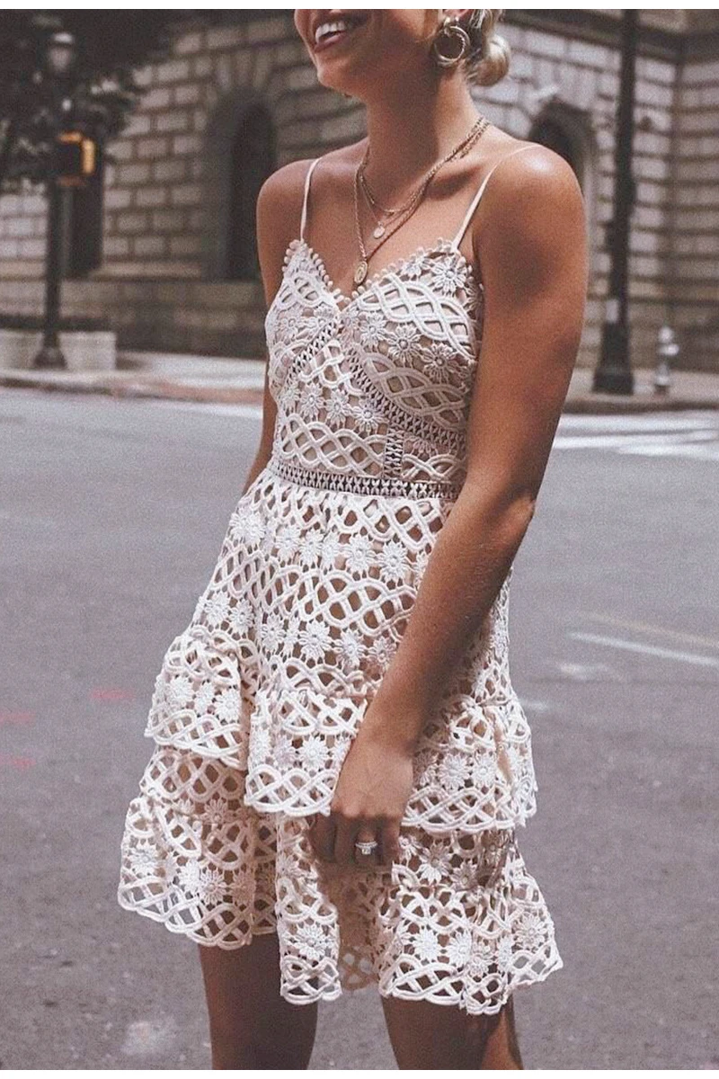 FREE SHIPPING 2019 Sexy Women White Lace Dress Party Spaghetti Strap Embroidery Ruffle JKP1538