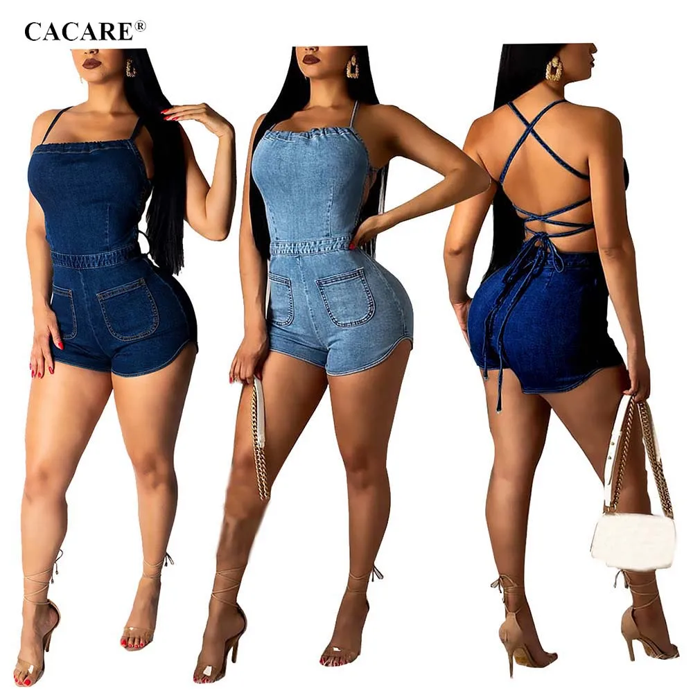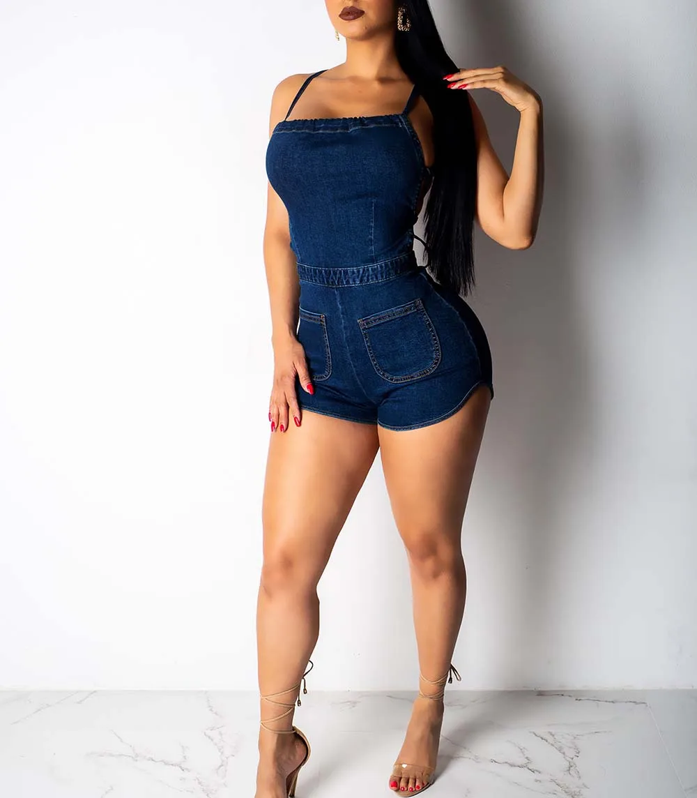 FREE SHIPPING 2019 Shorts Jumpsuits Rompers Playsuit Denim Jeans Pockets Backless JKP1532