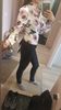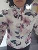 A good blouse, l corresponds to 48 size, the fabric does not shine through, the print is pleasant.