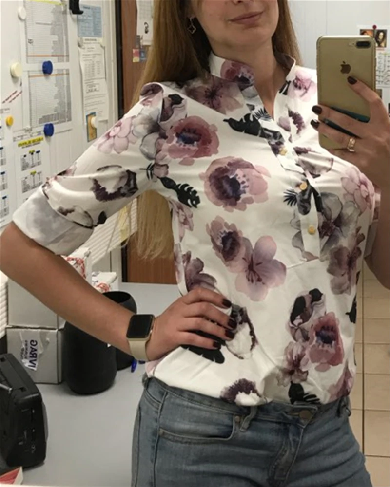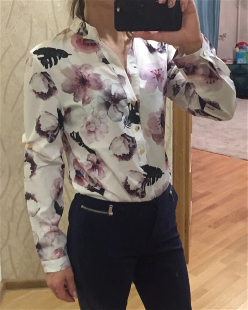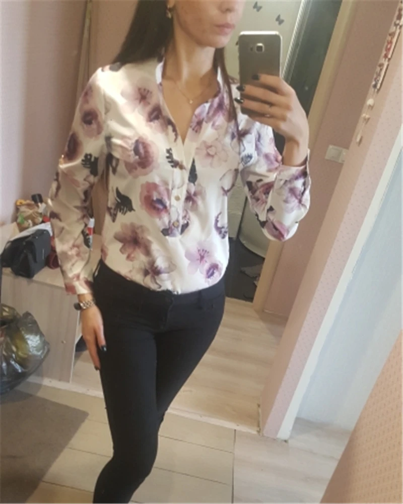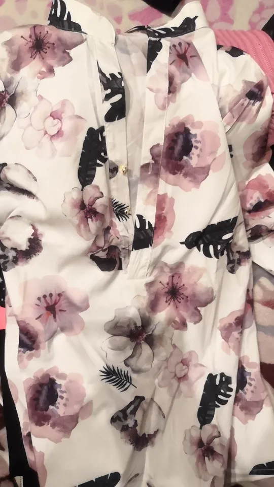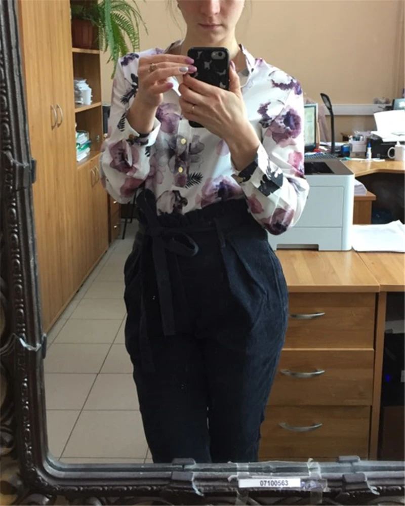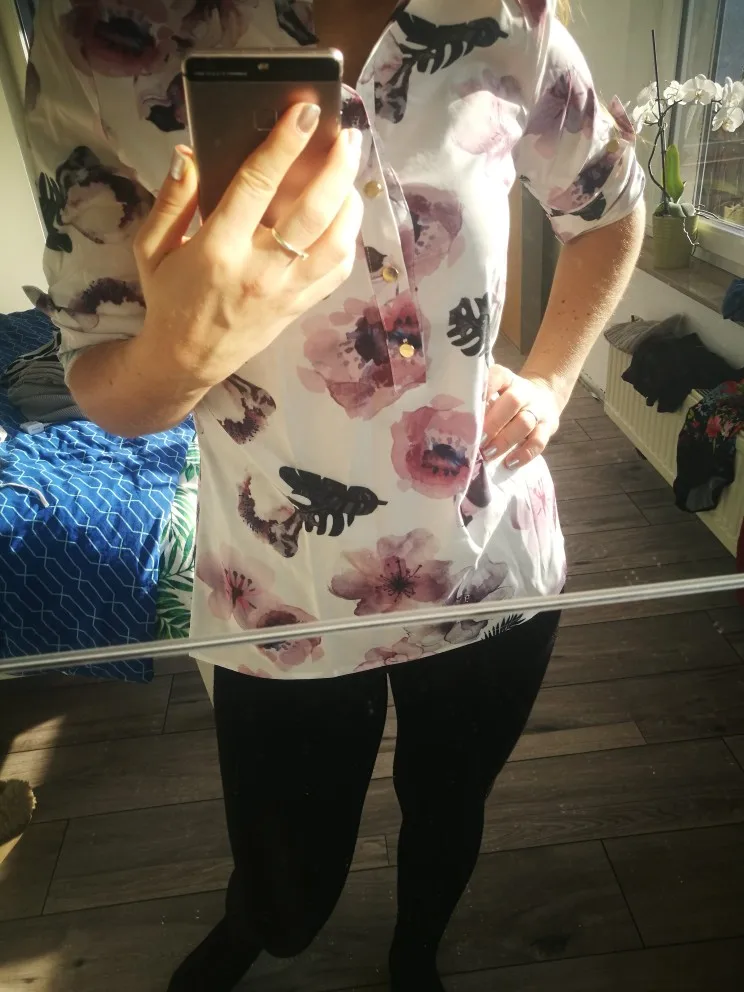A good blouse, l corresponds to 48 size, the fabric does not shine through, the print is pleasant.