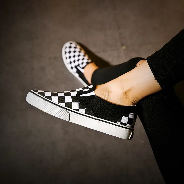 FREE SHIPPING 2019 Women Canvas Shoes Checkbered Couples JKP1421