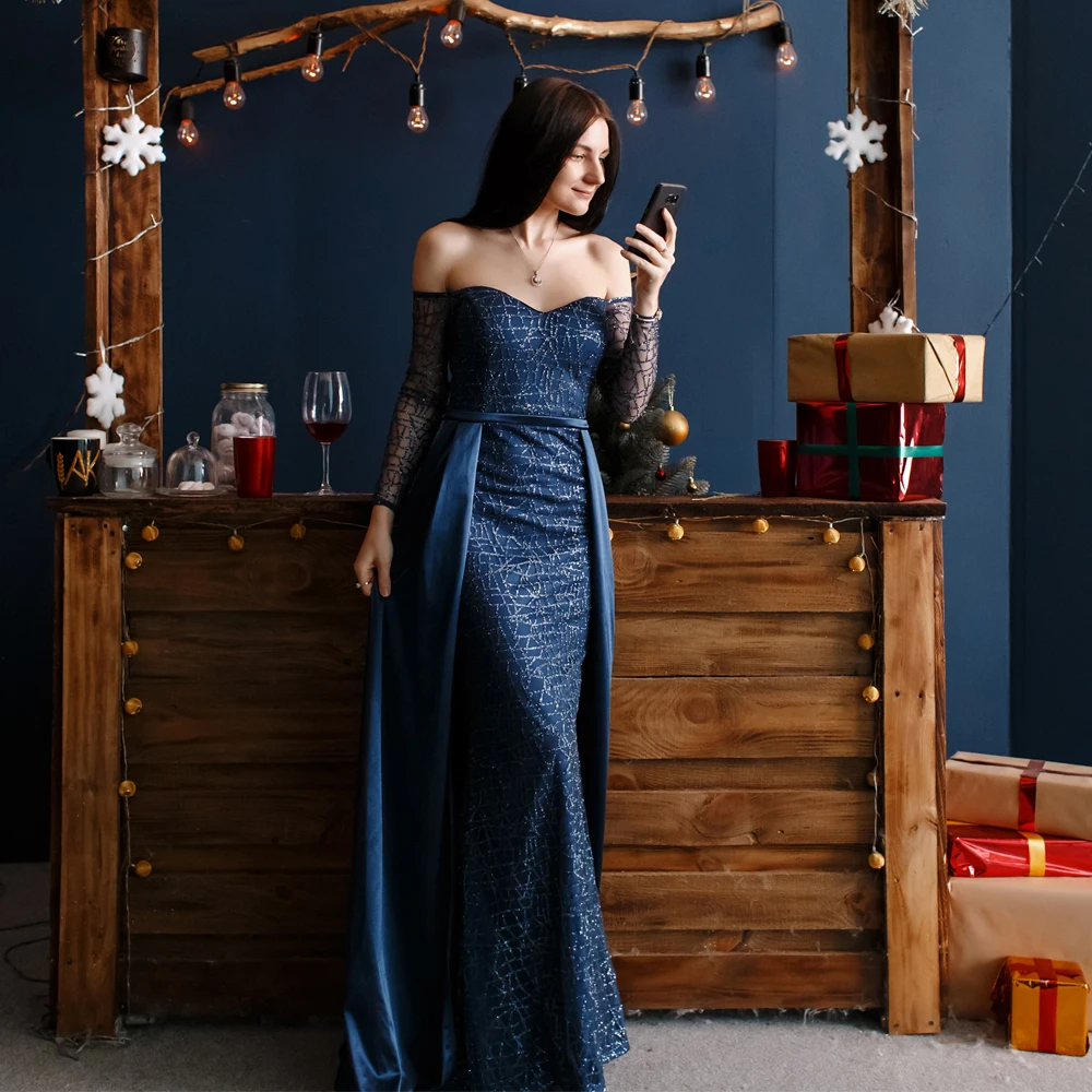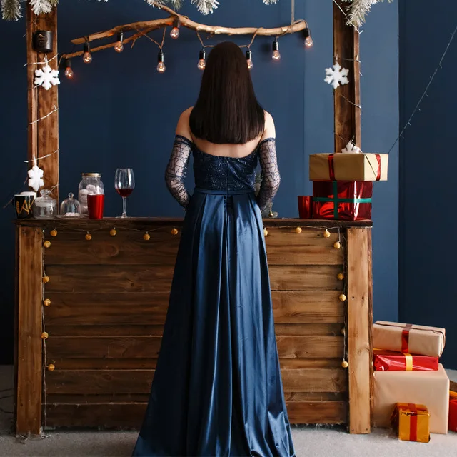Delivery about a month. I chose m marking for parameters 82-69-90, opg 75, height 163 cm-it was possible and less. The dress is pretty heavy. It is fastened with a zipper at the back. Shoulders open, while there are sleeves full of length. In the chest area there are inserts-cups. Also on the upper edge of the silicone strip. The dress sparkles and shimmers-it's sequins. The dress is silhouette, but on top of the sewn skirt made of material similar to satin. It is dense, poured. Length for my height with a good margin. I think up to 180 cm exactly. The quality is excellent. The dress is insanely beautiful and incredibly sparkling in artificial lighting. In the sock is quite comfortable. Well, in it, you will be irresistible! Its money is definitely worth it!) In life is much more beautiful than in the photo.