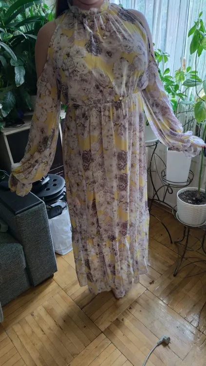 отличное платье. Очень прозрачное, но соответствует описанию и размерной сетке.На высокий рост (у меня 177 см) подошло отлично. Но и для девушек пониже будет отлично. красивая расцветка (хотя и не такая яркая, как на фото продавца).