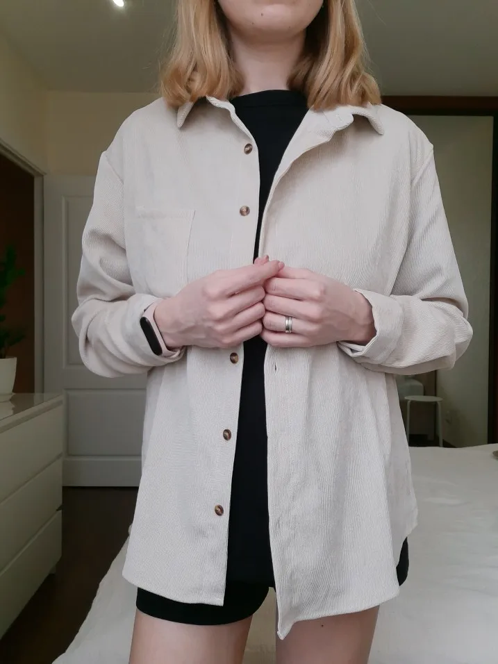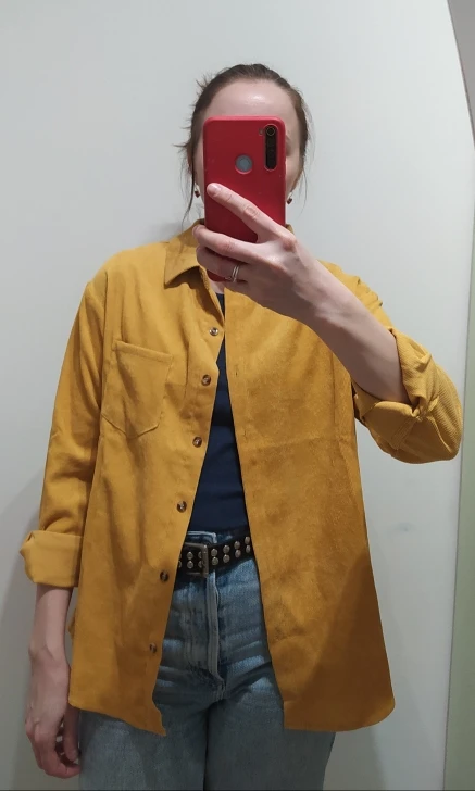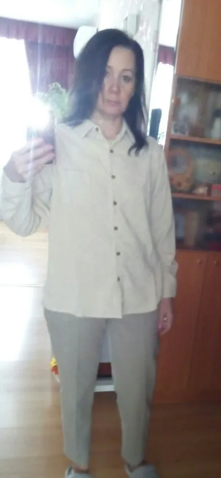The shirt bought a small one, sat back to back. I wanted an oversize. I read, damn reviews. From 96, about 113, 174. Sleeves are short, I'll try to roll up. The color is different from the store's picture, closer to mustard. See the second photo. But at the same time, the shirt is not bad. Thin fabric Tipo corduroy, very soft and pleasant. There are no complaints about quality. Nizhny Novgorod reached 3 weeks.