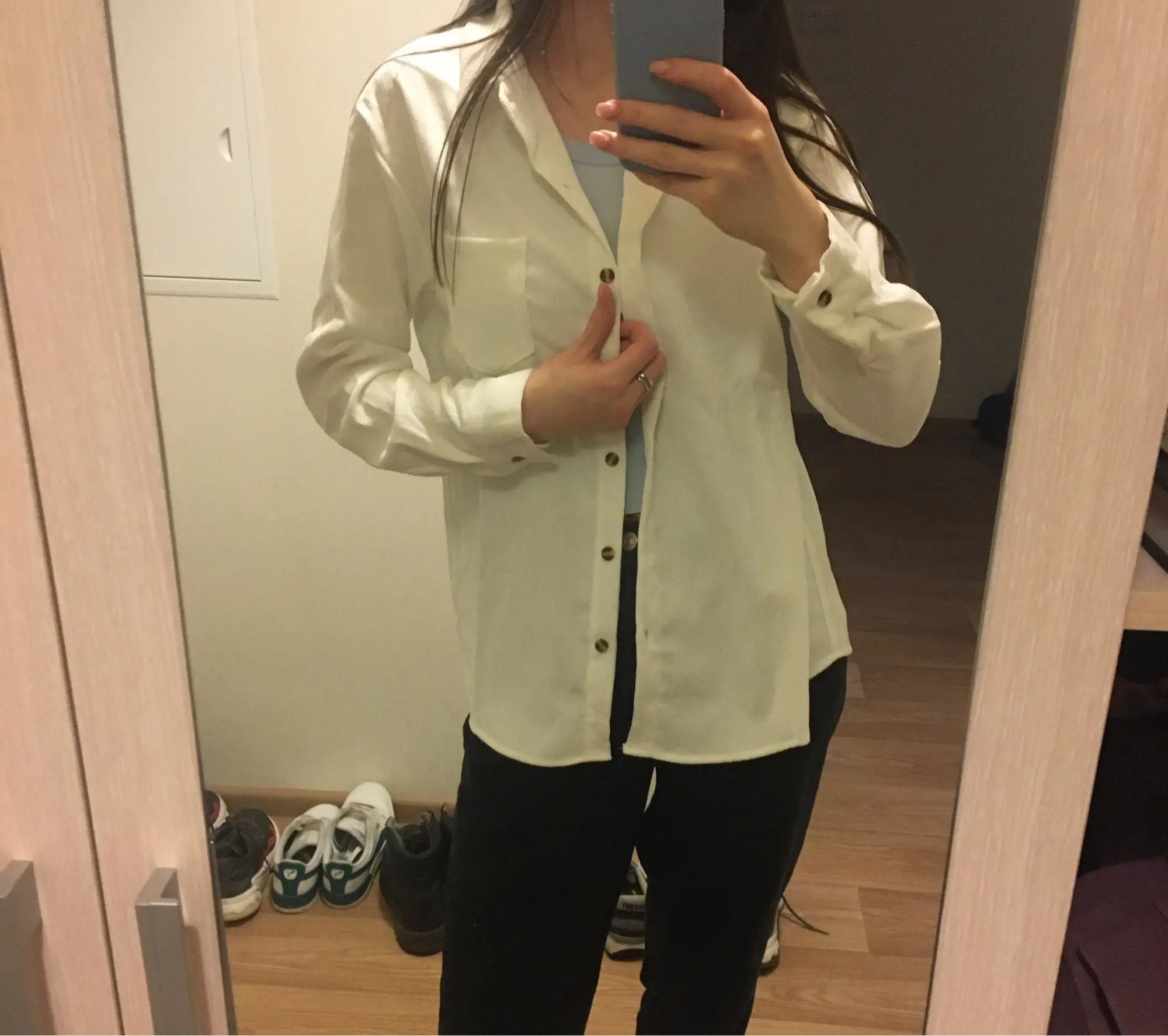 Nice shirt. On the growth of 163, the weight of 48 (grew 40-42) ordered in the amount of s. I sat down properly, the sleeve is not short. Free cut. Suitable for a T-shirt or T-shirt. Synthetic fabric. On my photo is different color. Corresponds to the store's description. Fast delivery in 12 days!!! Recommend⭐& Middot;⭐& Middot;⭐& Middot;⭐& Middot;⭐& Middot;