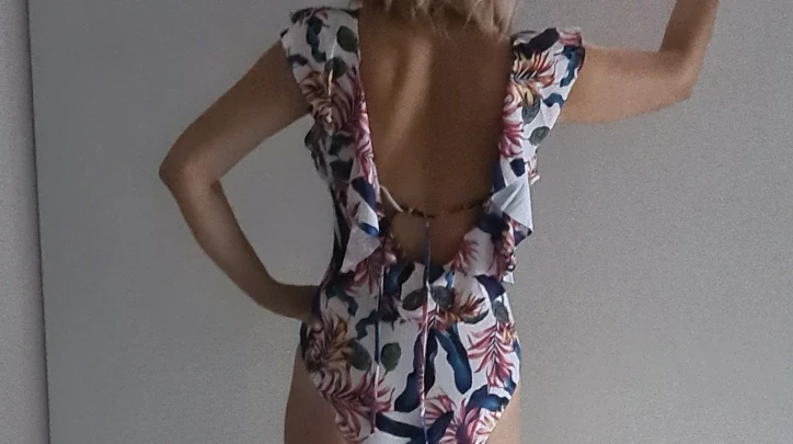 У купальника отличное фабричное качество - ровные швы, отсутствие торчащих нитей и дефектов, приятная к телу ткань. Купальник имеет слитный фасон, закрытую спинку и рюши в виде декора. Идеально подойдёт на отдых и для красивых фото. На параметры 83-64-91 и рост 173 купальник в размере М сел отлично! Рекомендую к покупке!