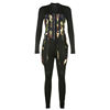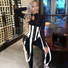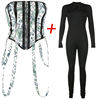 The corset is awesome! The jumpsuit is okay. You can wear the corset as the model does in the picture, or place it over the bust instead. I think that because I have a bigger bust it looks and fits better with the corset worn over the bust. Both the corset and jumpsuit are very stretchy. But the jumpsuit is so thin it is see-through, and one wrong bend will rip it easily. My jumpsuit had a small tear, but it's nothing some sewing can't fix. Overall I'm very happy with the product. It took a long time for the item to first ship, and it also took a long time to arrive. The store is very responsive. Packaging was good. I bought the large. I'm a size US 10-12, height 5'7" (170cm), 190lbs (86kg)