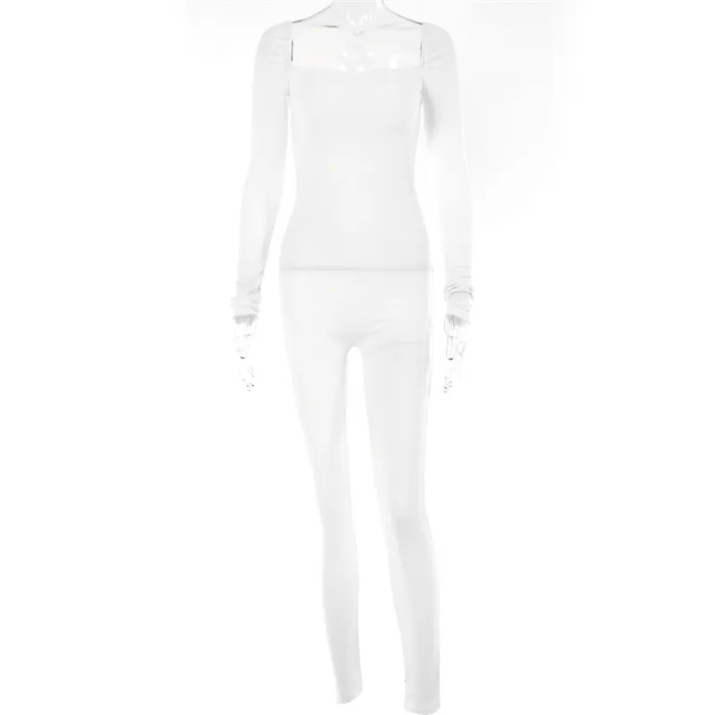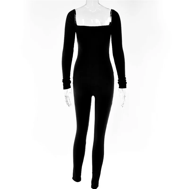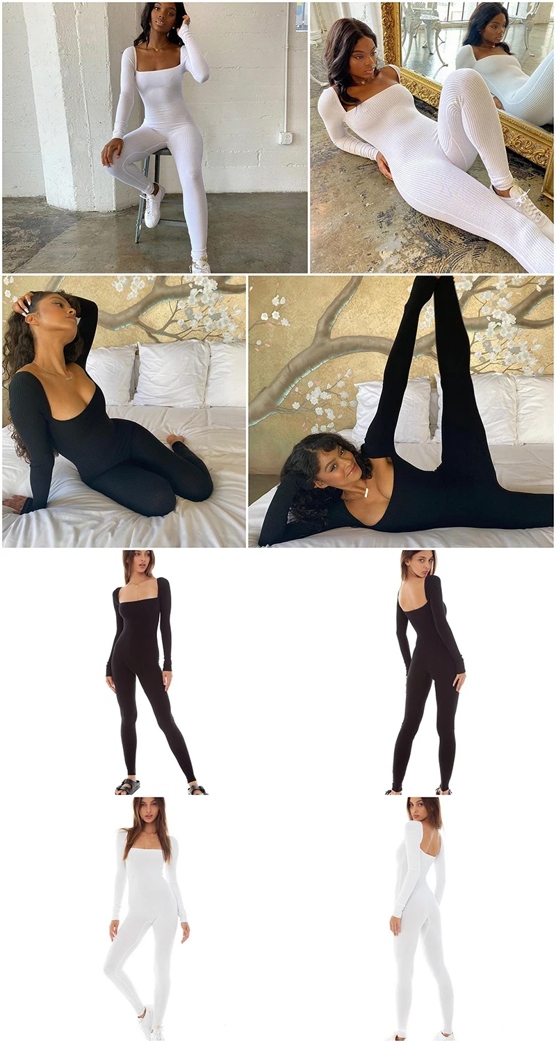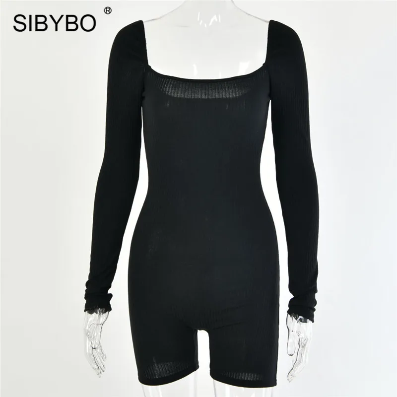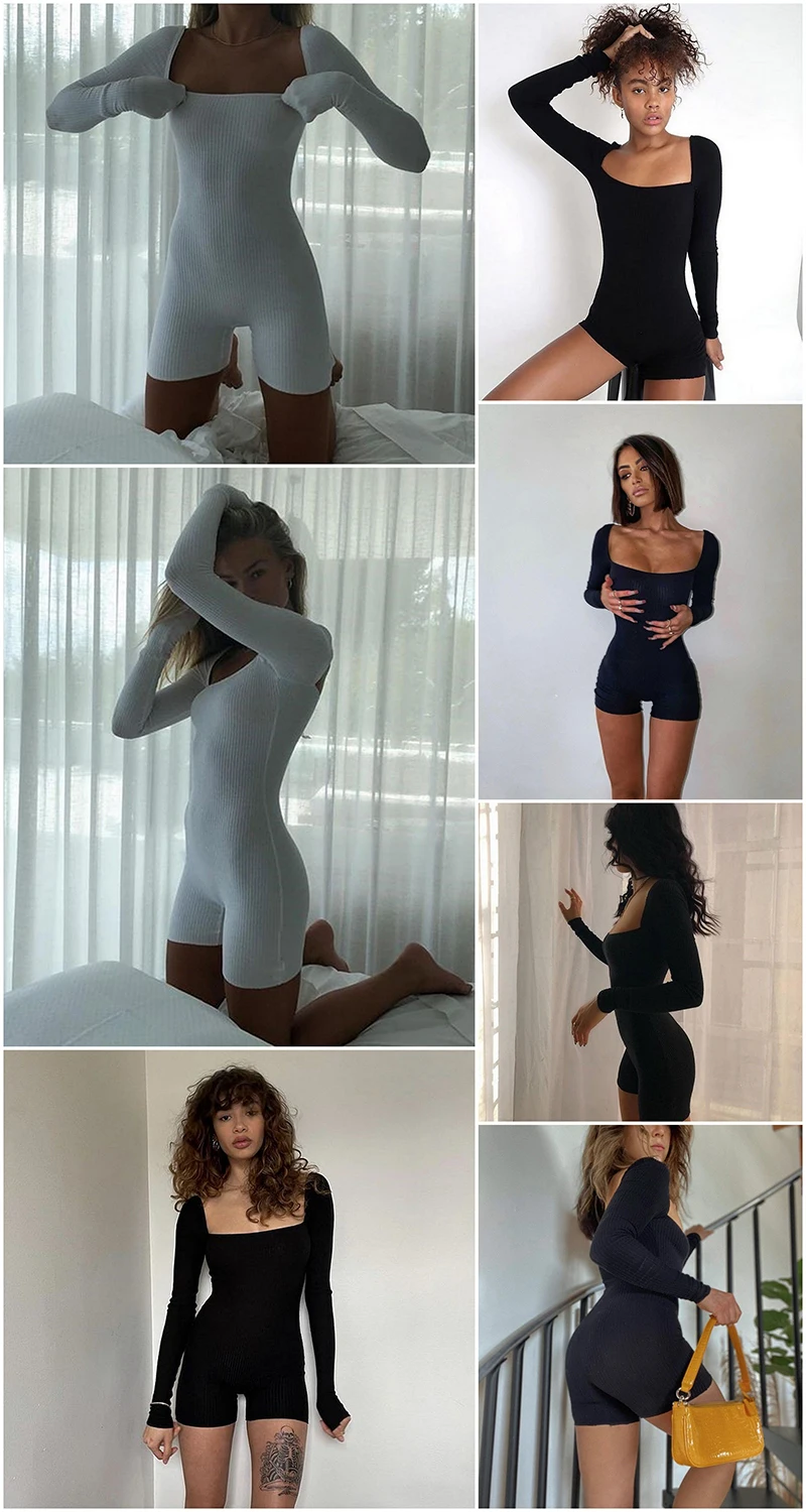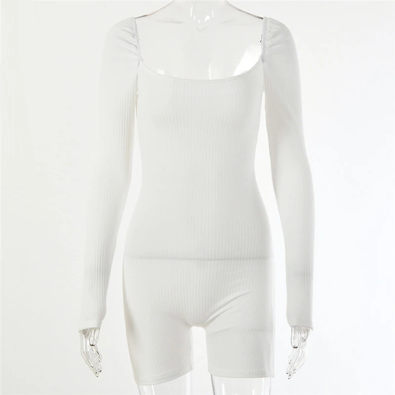 FREE SHIPPING 2022 Women Short Jumpsuit Rompers Ribbed Square Collar JKP5892