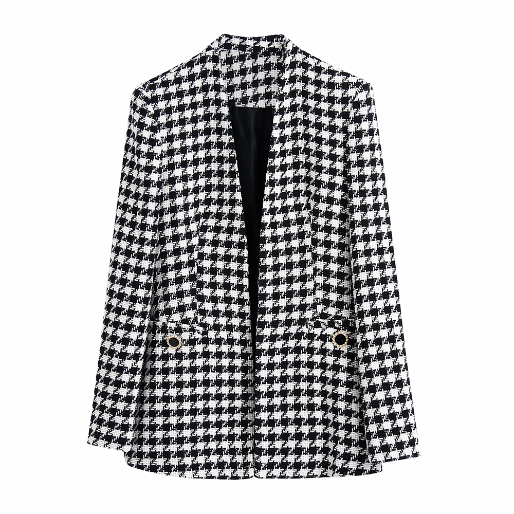 FREE SHIPPING 2022 Women Vintage Blazer V Neck Long Sleeve Tweed Set JKP5940