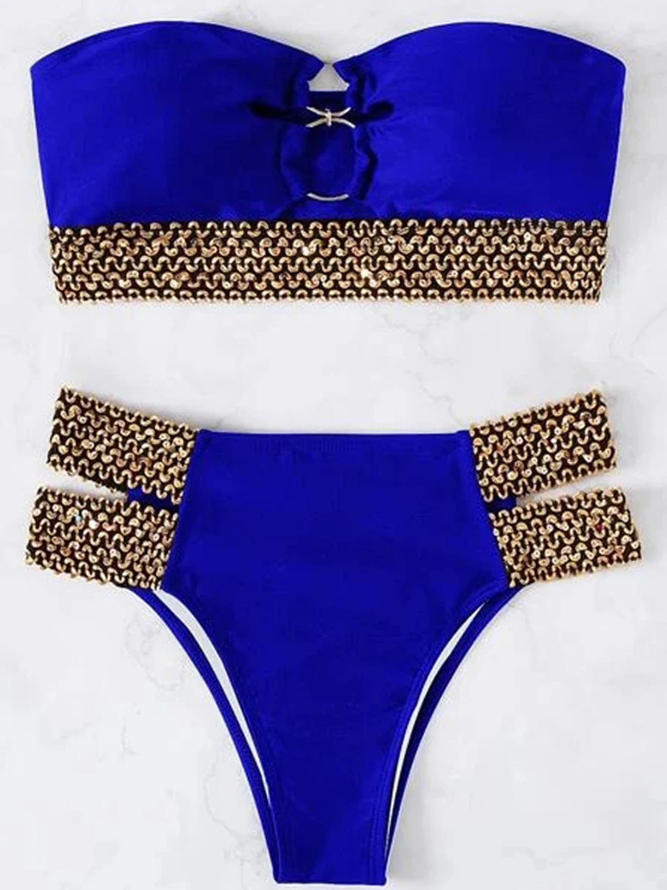 FREE SHIPPING 2023 Glitter Strapless Bikini Belt Style Two Pieces Set JKP6038