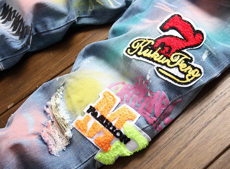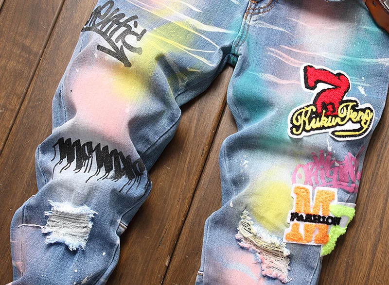 FREE SHIPPING 2023 Grafitty Denim Pants Casual Streetwear JKP5985