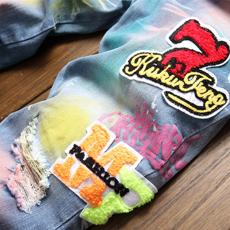 FREE SHIPPING 2023 Grafitty Denim Pants Casual Streetwear JKP5985