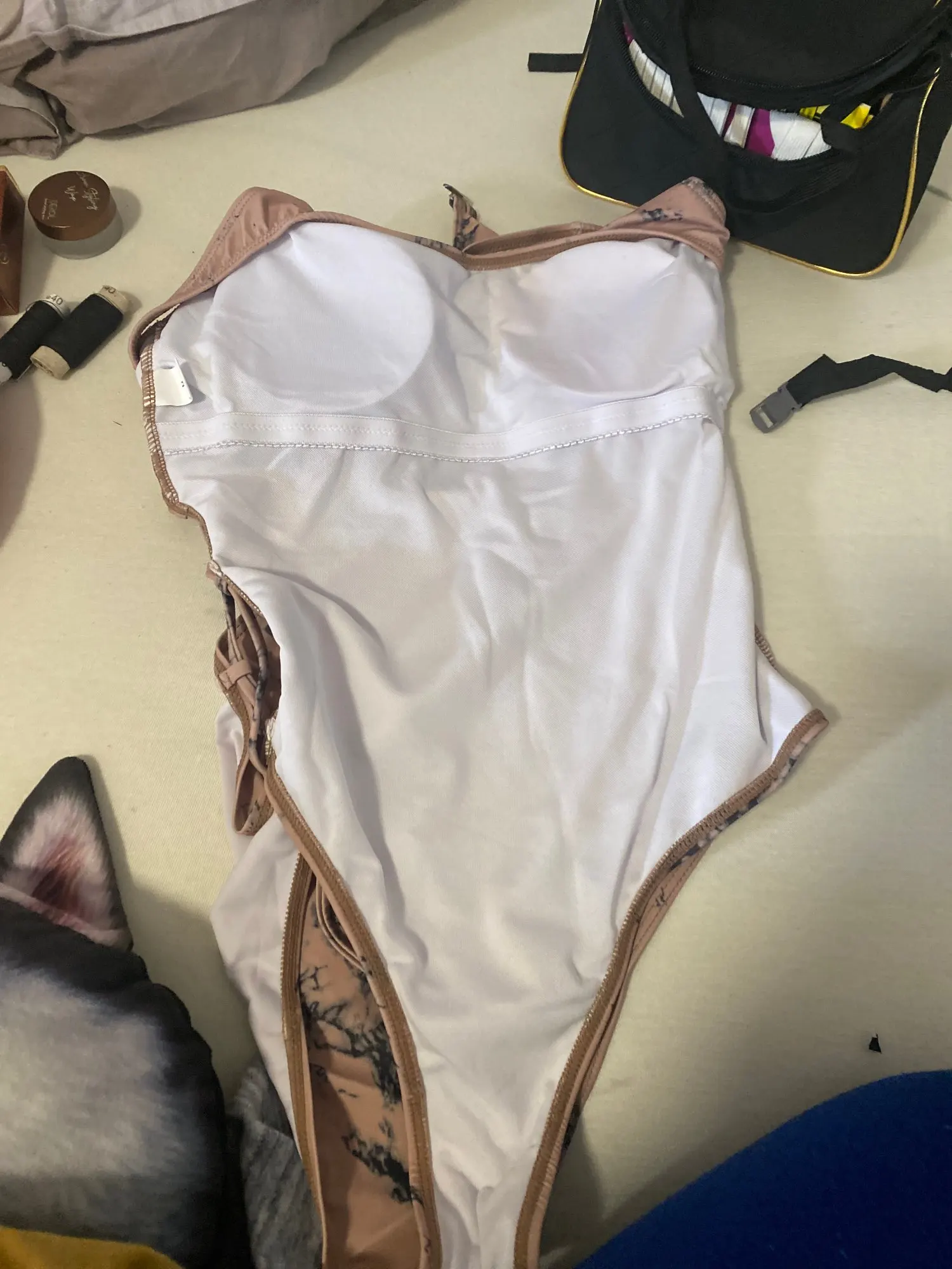 The swimsuit came quickly, everything is fine, neat, tight with cups, but I probably got excited and took a big one for my daughter, she wears a C-ku. So it is not small and take your size. Her 174 growth, 85-64-92. Thanks store, recommend
