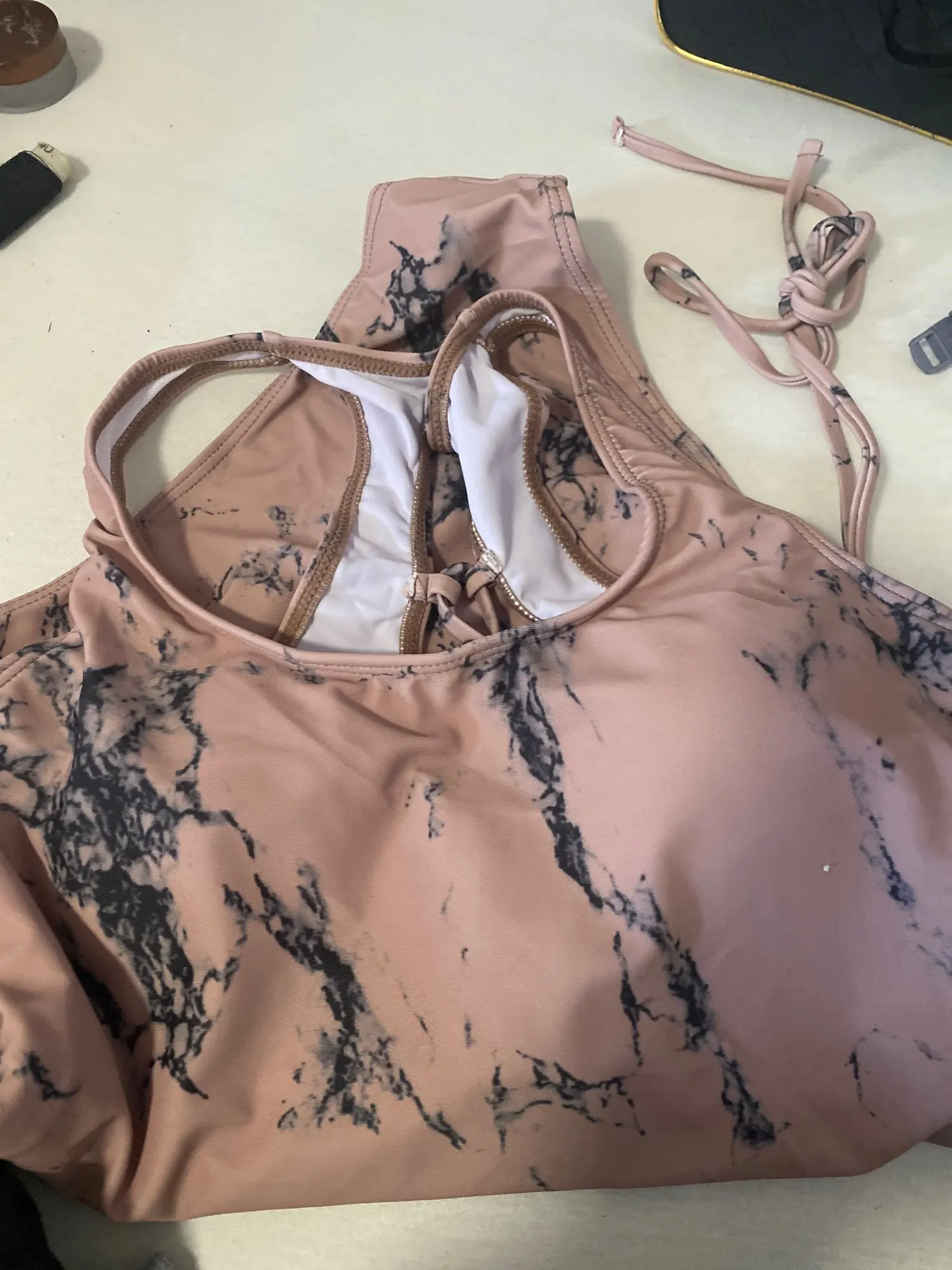 So pretty. This neon color makes me look darker I’m 5.5 but S size still fit on me