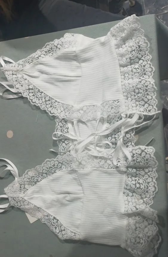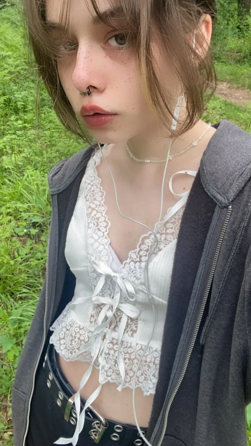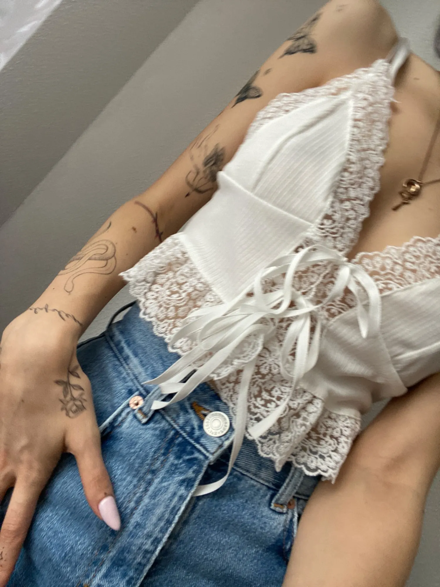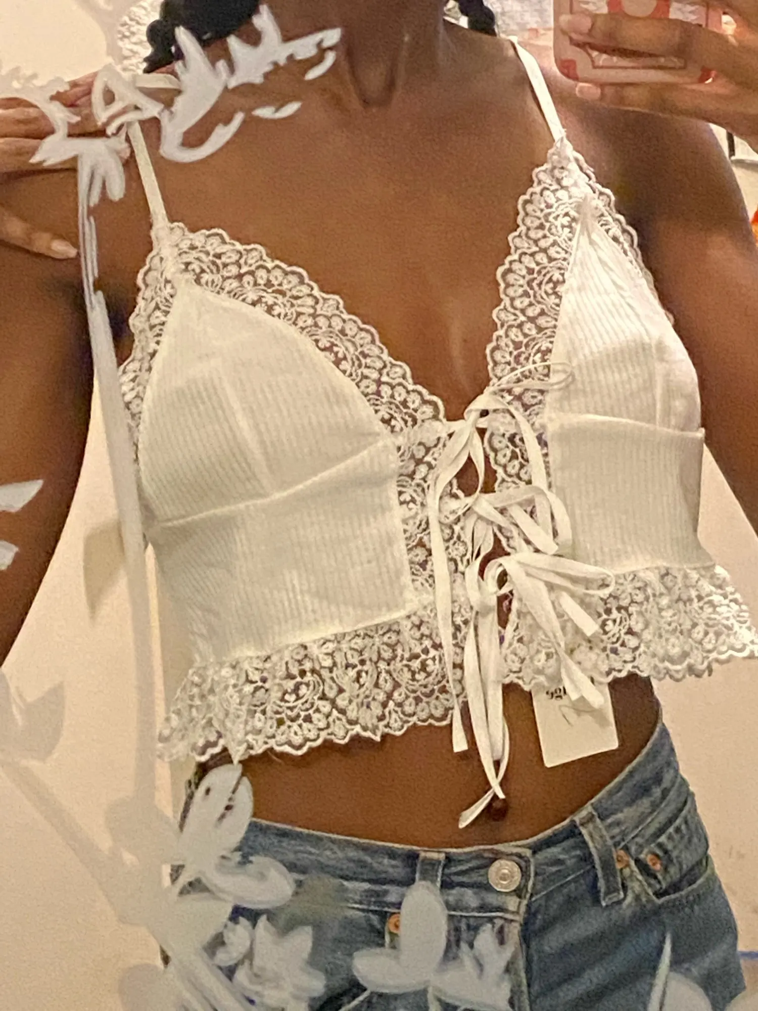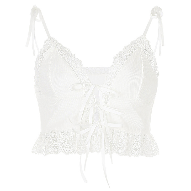 FREE SHIPPING 90s Vintage Frill Lace Crop Tops JKP4551