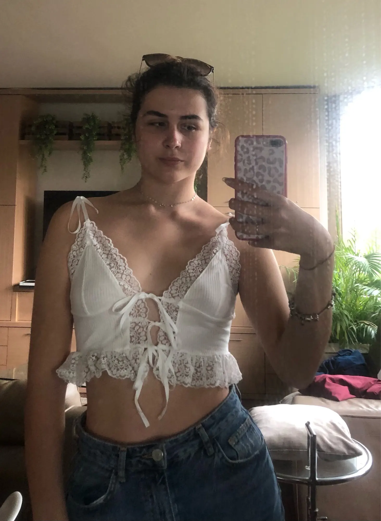 really pretty top!! so glad i bought it, however just a lot of lace to tie up but it’s gorgeous once on and i can layer it with so many things!!