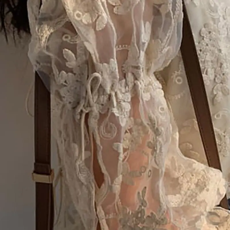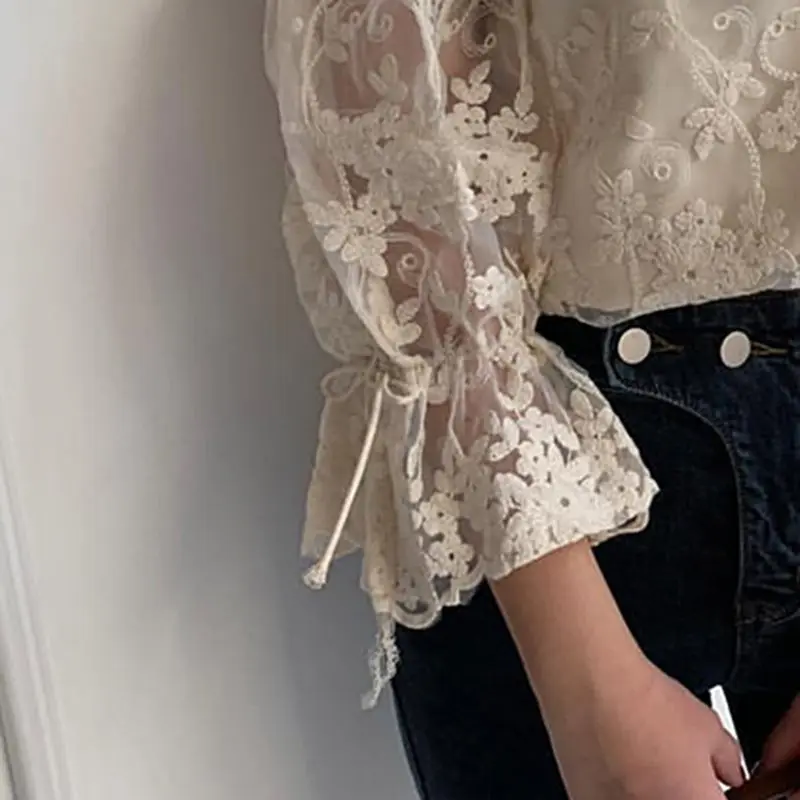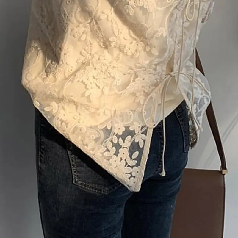 FREE SHIPPING 90s Vintage Lace Floral Blouse JKP3043
