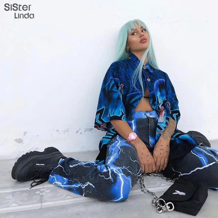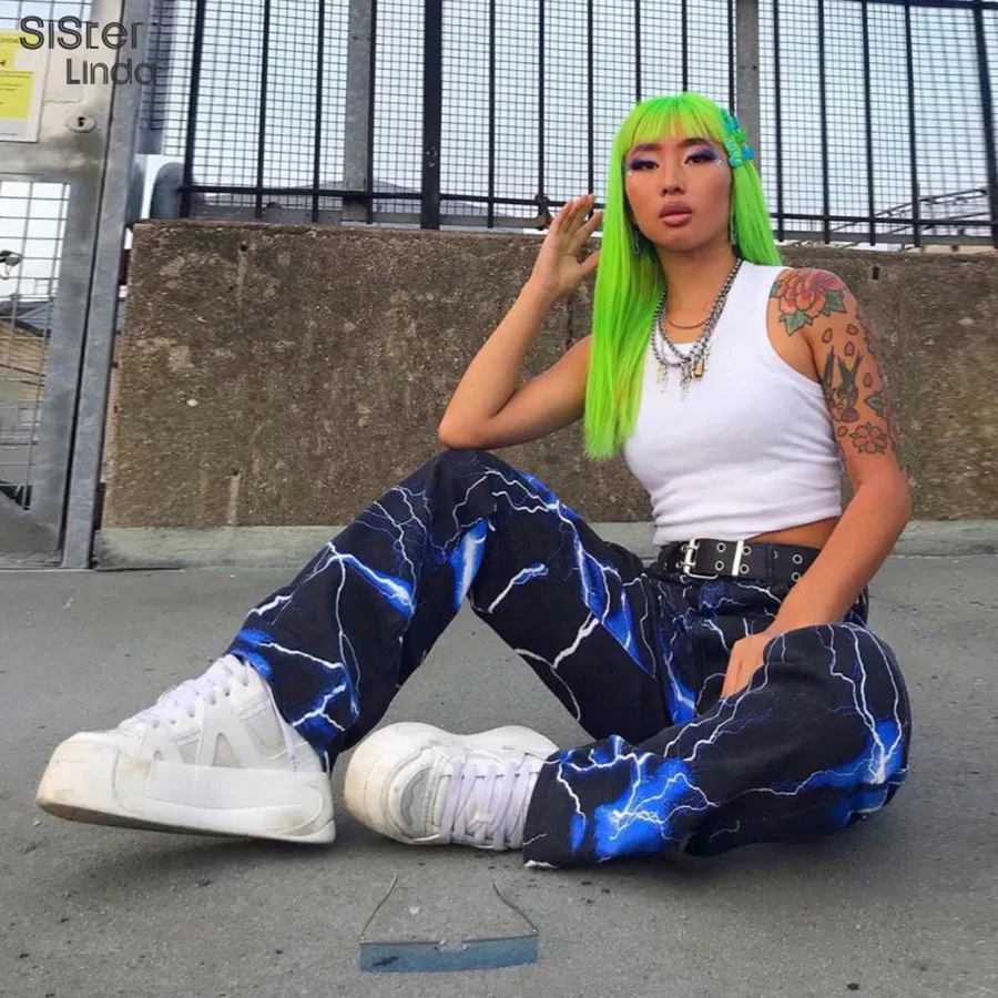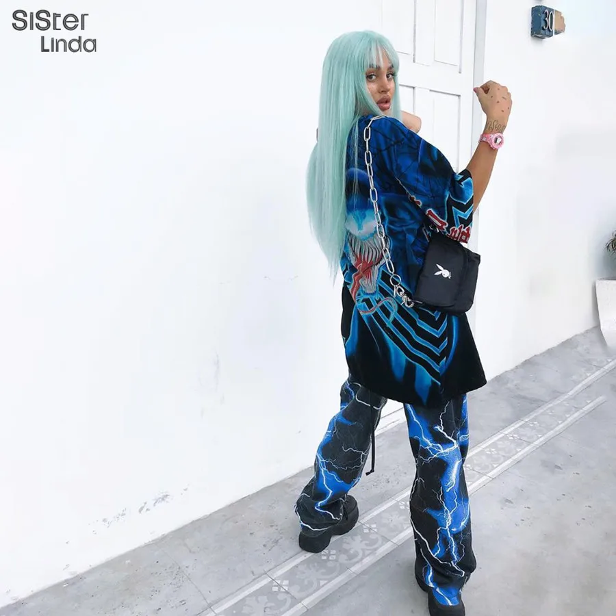 FREE SHIPPING Abstrac Vintage Print Casual Pants Women Fashion Streetwear Harem Pants High Waist JKP3782