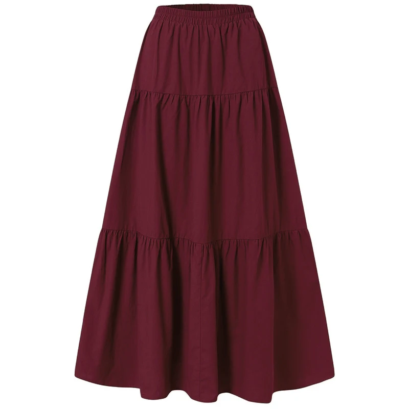 Great tiered cotton skirts. I'm a US medium and settled on XL; the elastic is comfortably snug with room to stretch.
