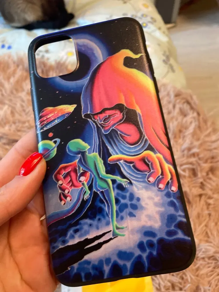 Качественный чехол, картинка хорошо напечатана. Отлично сел на iphone 8 plus. Запах присутствовал, но выветрился. Заказывала 29.07.2020, пришло где-то 12.08.2020 upd. не проверяла, но вроде бы в темноте немного светится.