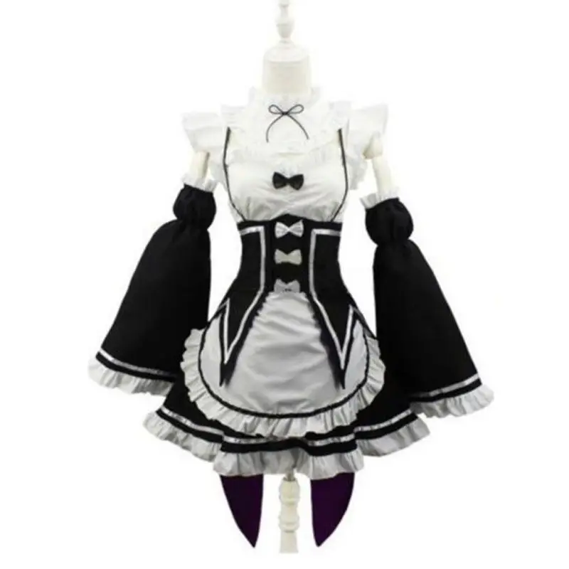 FREE SHIPPING Anime Re:zero Kara Hajimeru Isekai Seikatsu Life In a Different World Ram Rem Cosplay Costume Maid Dress Halloween Costume JKP2943