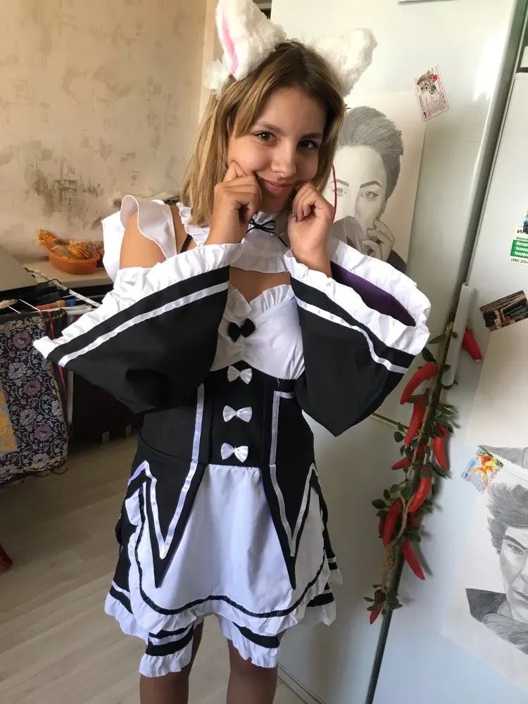 It came very quickly (in the kaluga region for 8 days). At the height of 160 ordered the size s. at the waist much wider than expected, the straps are too big. The quality of the fabric is good, i thought it would be worse. It is very insulting that the white apron in front is sewn crooked, and it is very noticeable. But overall the suit is good, thanks to the store.