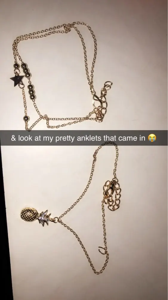 I'm super in love with this anklet set, it reminds me of the beach due to the waves pendant and the shells. I ordered this on March 9th and got them today. Thank you store ♥