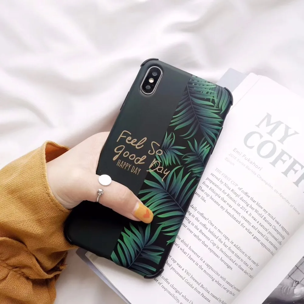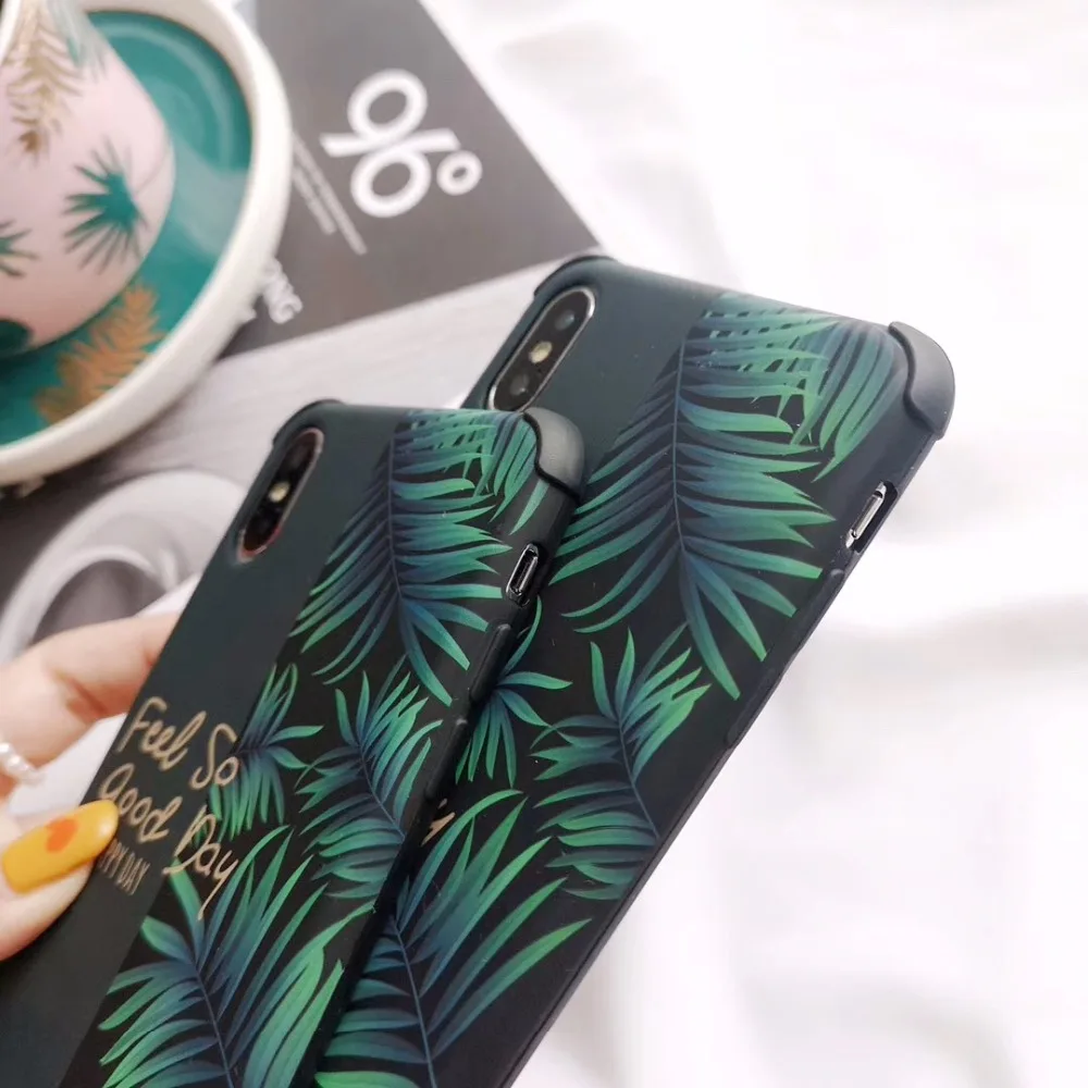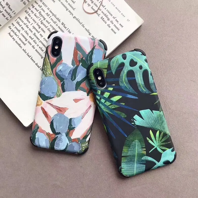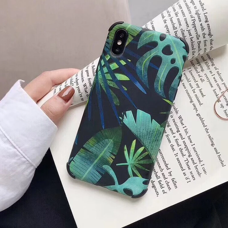 FREE SHIPPING Anti-knock Splicing Phone Case For iPhone XR XS Max 6 6S 7 8 Plus X Soft IMD Banana Leaf Letters Flower Fruit Back Cover JKP1924