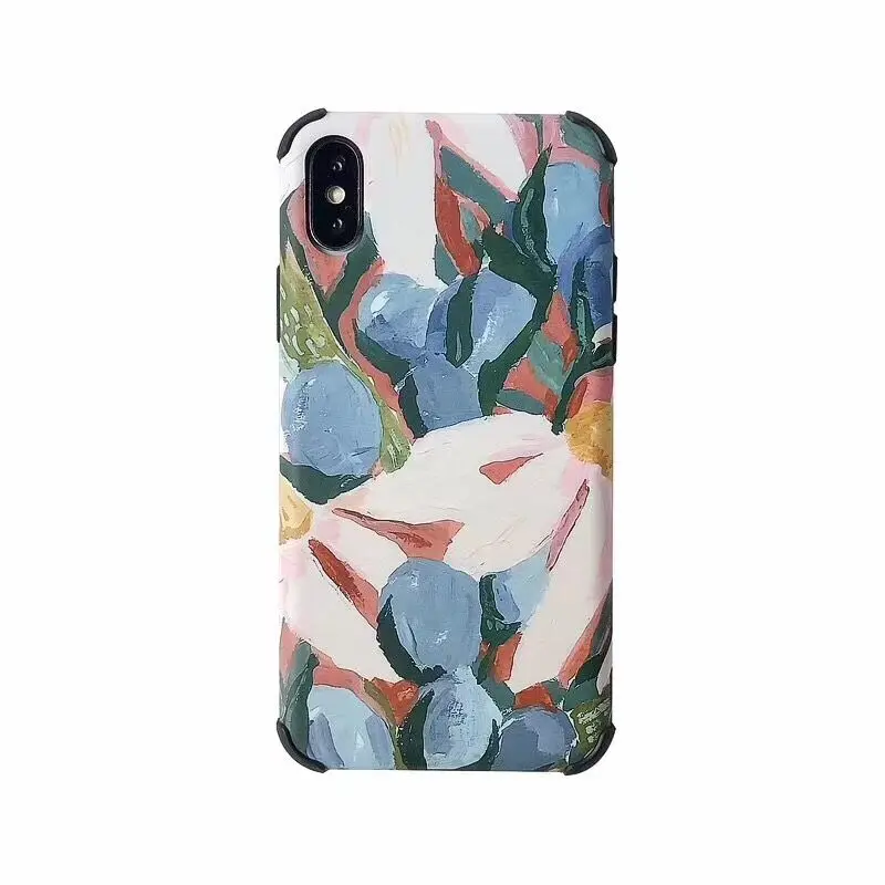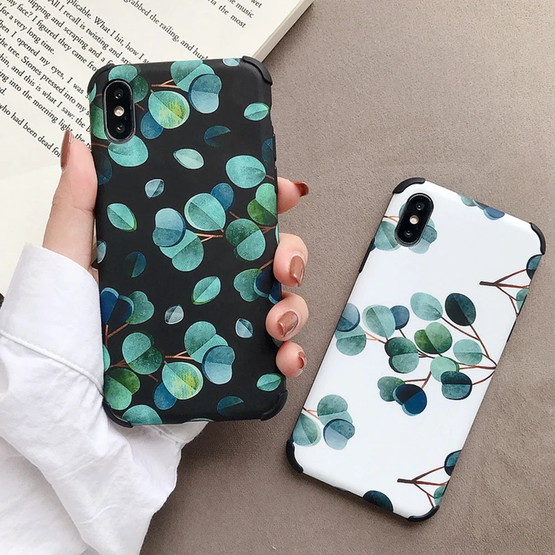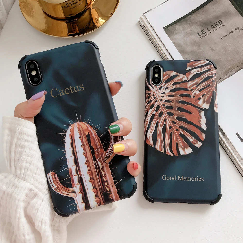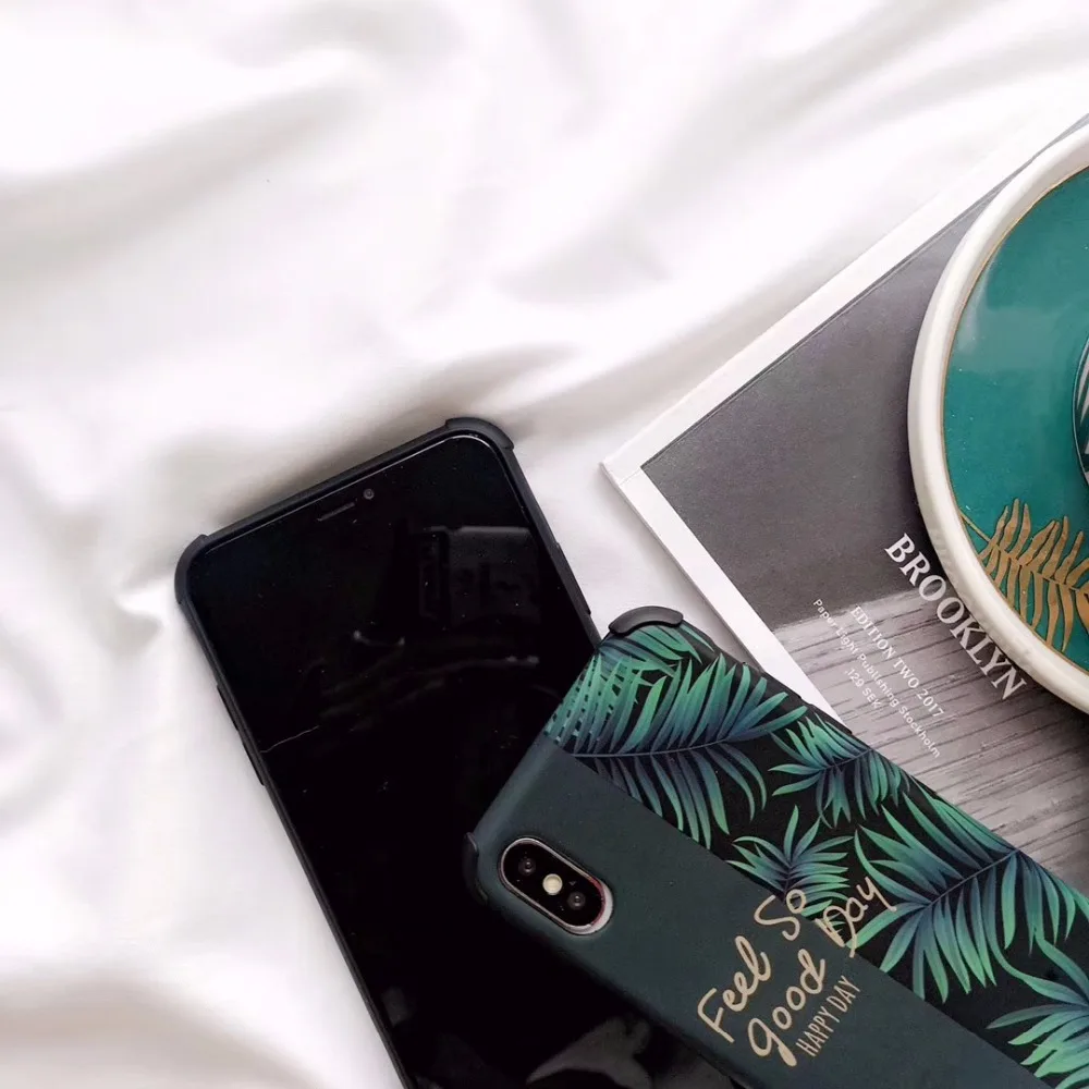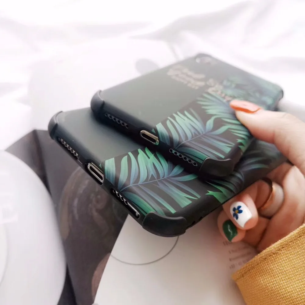 FREE SHIPPING Anti-knock Splicing Phone Case For iPhone XR XS Max 6 6S 7 8 Plus X Soft IMD Banana Leaf Letters Flower Fruit Back Cover JKP1924
