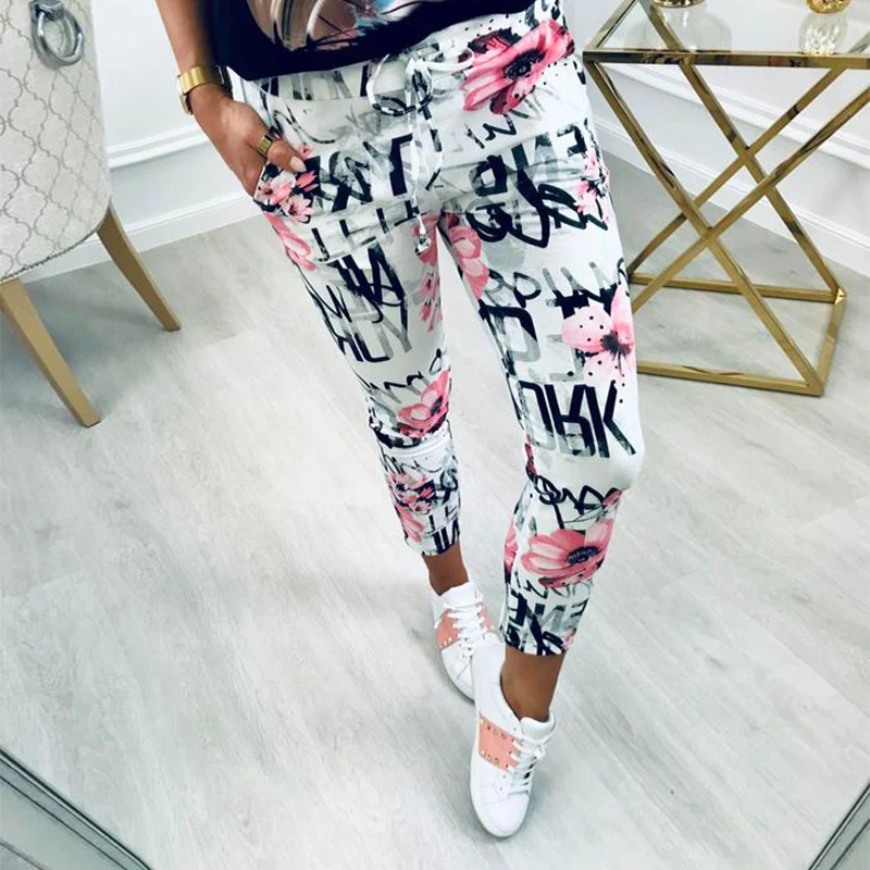 FREE SHIPPING Autumn Drawstring Ankle Length Pants Women’s Summer Casual Trousers Pencil Casual Pants Floral Printed Women’s Trouser JKP2189