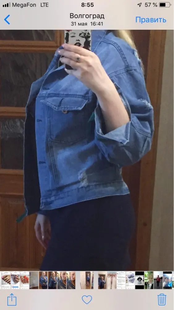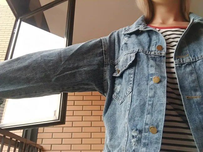 The denim itself is very good, but the thread was very much, both inside and outside. The ribbons are green on the sleeves i pulled away, they are not at all for anything. Well, the holes under the buttons you have to do yourself. And so in general, very satisfied. On the parameters 85 72 95 took l. the sleeve is short on the height of 176. Full review see my blog in instagram @ alimama.ru