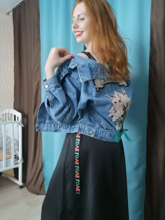 27.07 ordered 16.08 received in novosibirsk. With the store did not communicate, the orders are very satisfied!!!! Chose a larger size, t. K. I wanted the jacket to be free sitting at me xs/s ordered m. The lines are even, the inside is beautiful, there is almost no smell, the jeans are soft, natural, the delivery is fast, with the size is all right!!!! You need to cut the hinges and embroidery is very easy to peel off and glue on the glue, if there is a desire!!! Jacket fire!!! Thank you very much to the seller!!!!