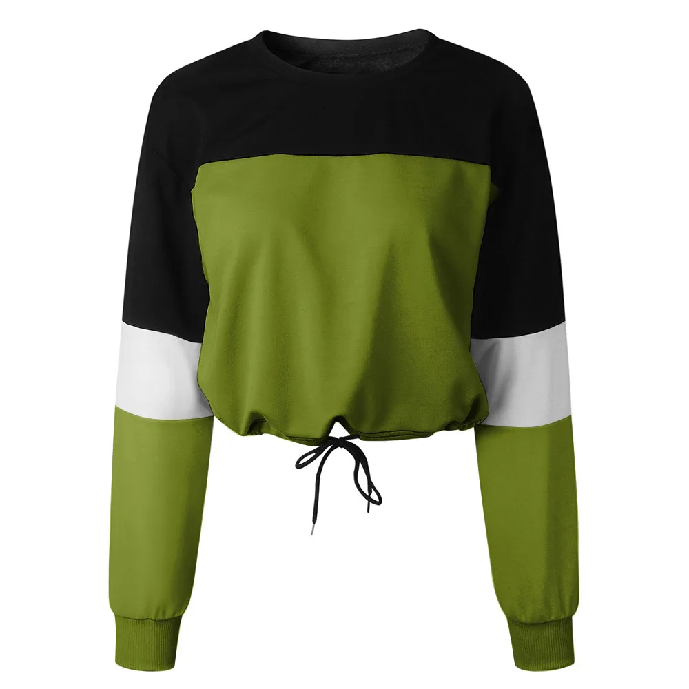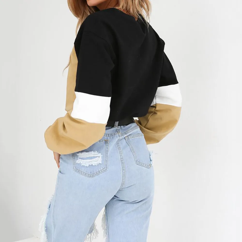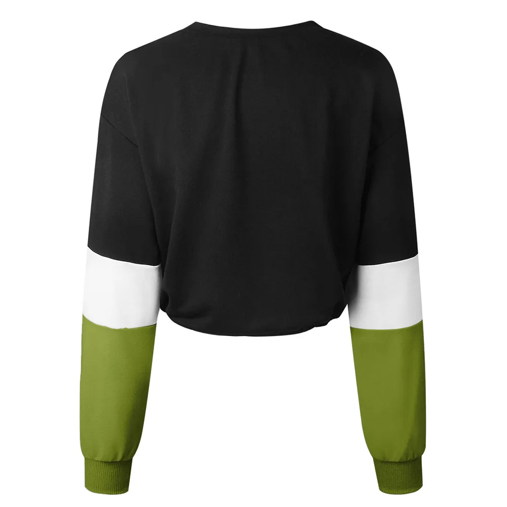 FREE SHIPPING Autumn Fashion Patchwork Color Crop Pullover JKP3117