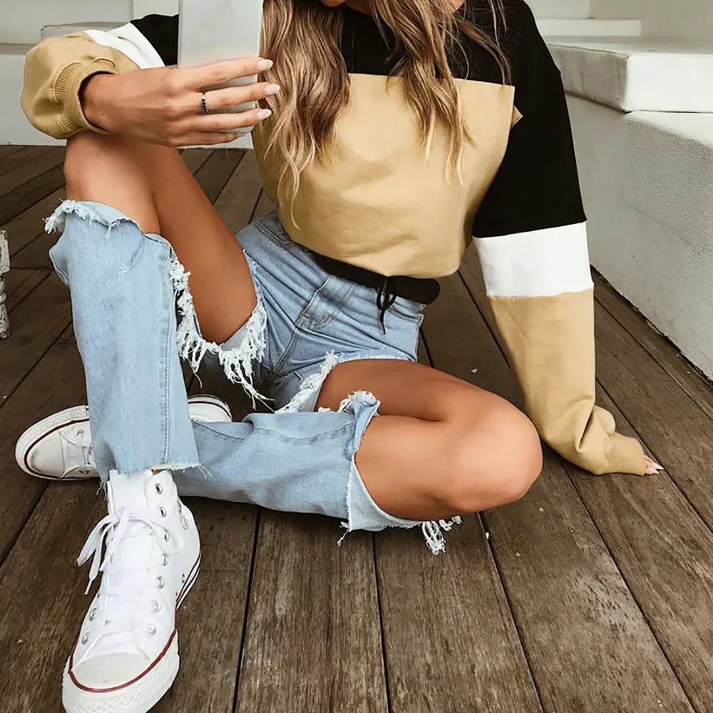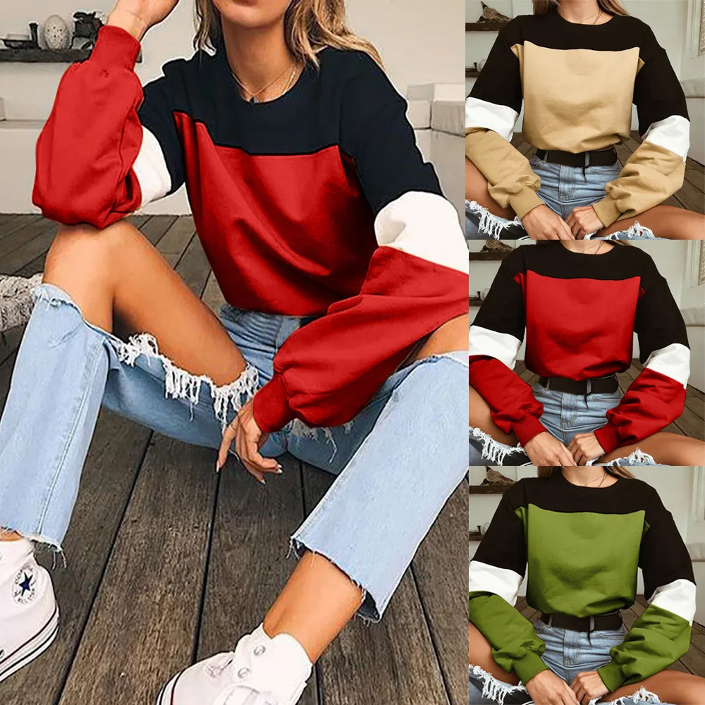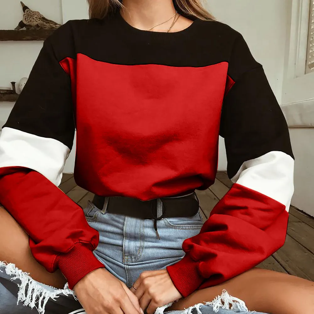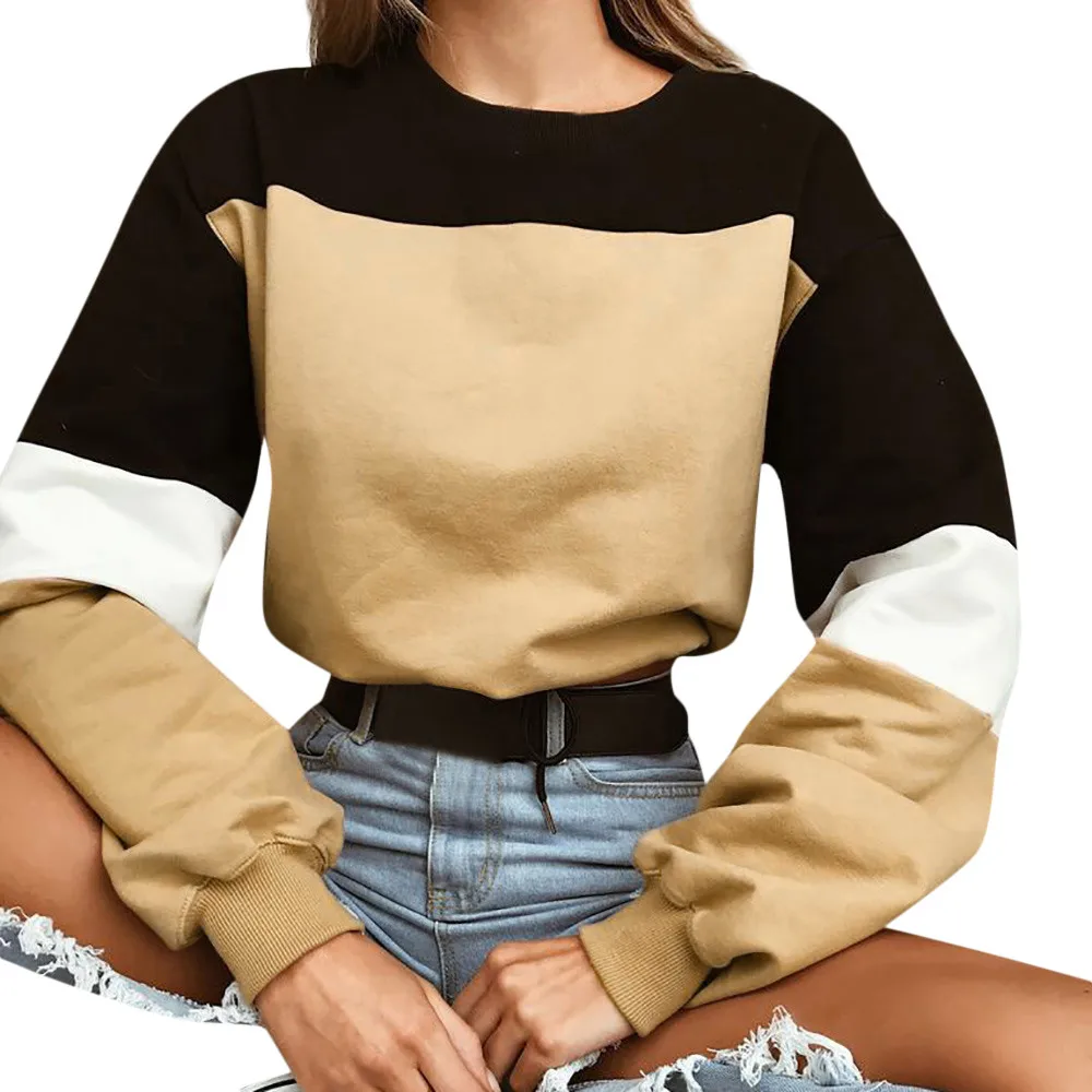 FREE SHIPPING Autumn Fashion Patchwork Color Crop Pullover JKP3117