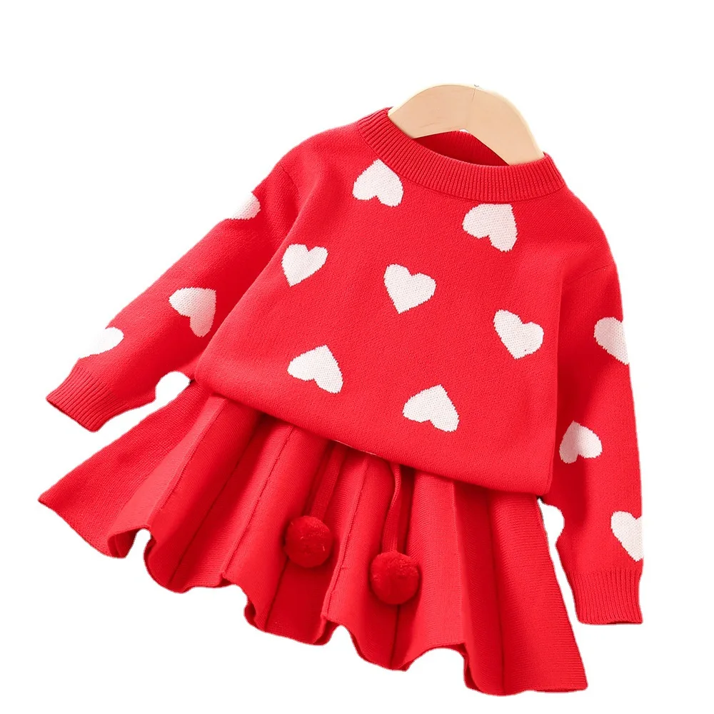 FREE SHIPPING Autumn New Arrival Girls Fashion Knitted 2 Pieces Sets Sweater Coat And Skirt JKP6100