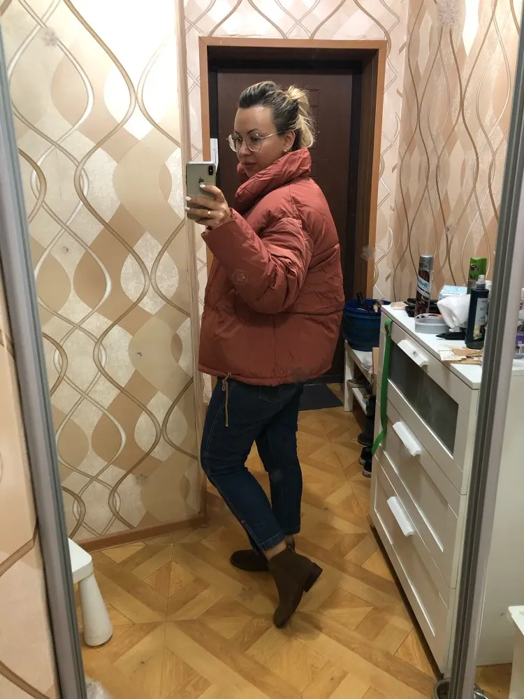 Not delighted, but on their money pulls. The color is interesting, but the material is straight chinese, it can be seen that the jacket with alika)) took the younger sister, for my height 177 sat well, but the sleeves are short. Threads stick out in several places. No smell.
