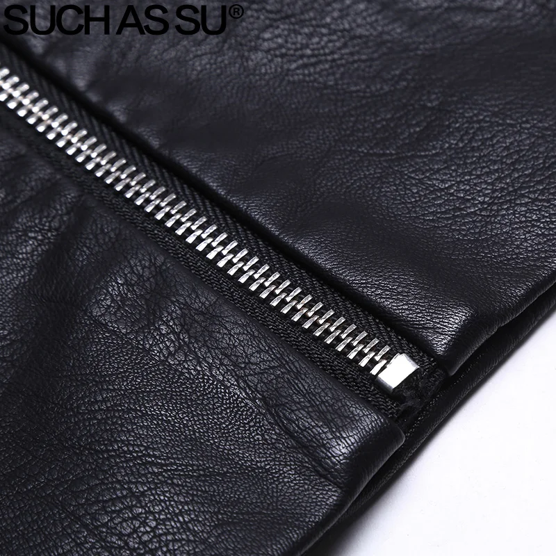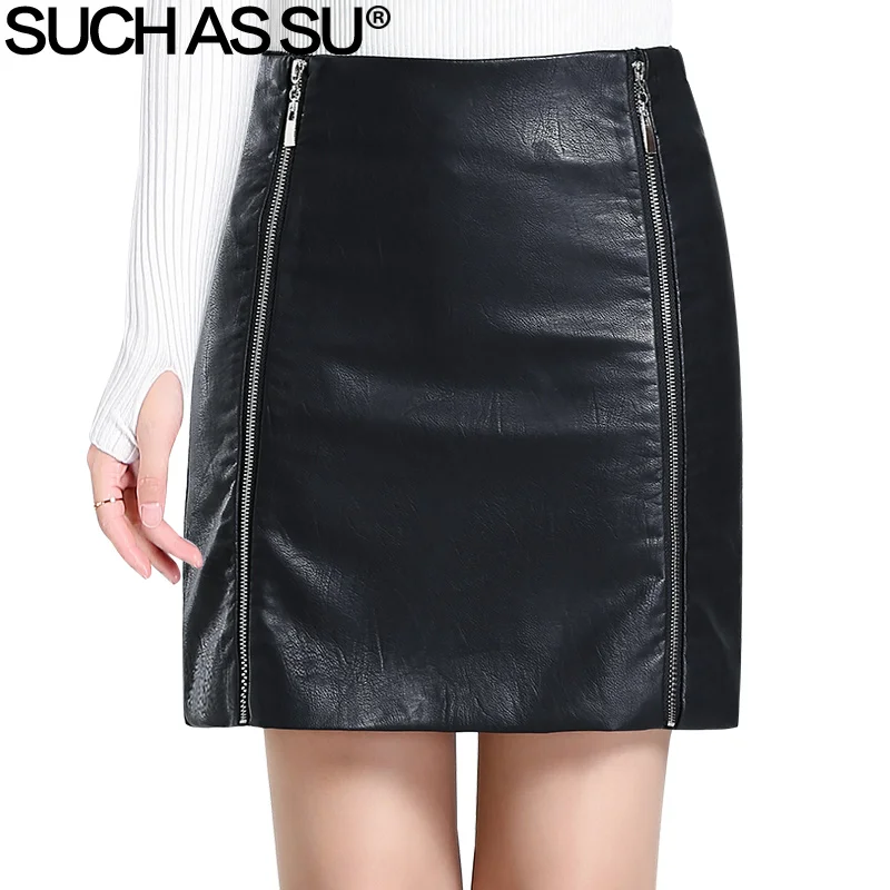 FREE SHIPPING Autumn Winter PU Leather Pencil Skirt Black Double Zipper S-3XL JKP1259