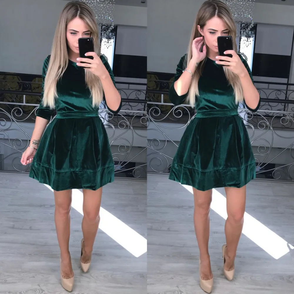 FREE SHIPPING Autumn Winter Vintage Sexy Casual Velvet Dress JKP3279