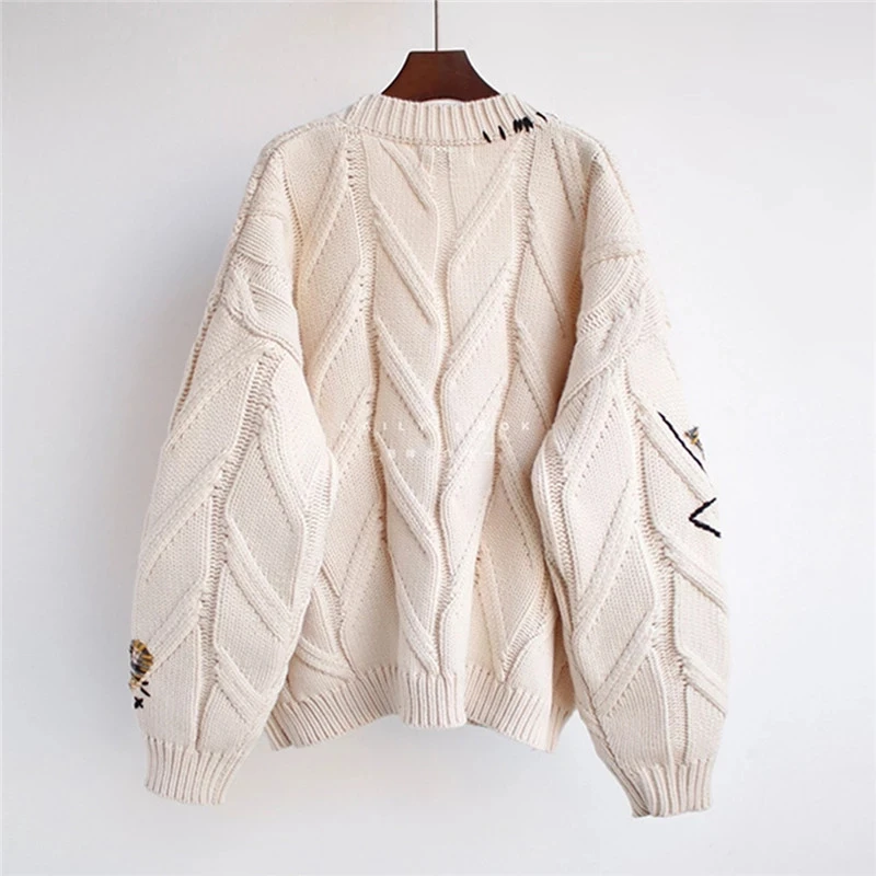 FREE SHIPPING Autumn Winter Women Casual Cardigan Knitted Embroidery JKP6096