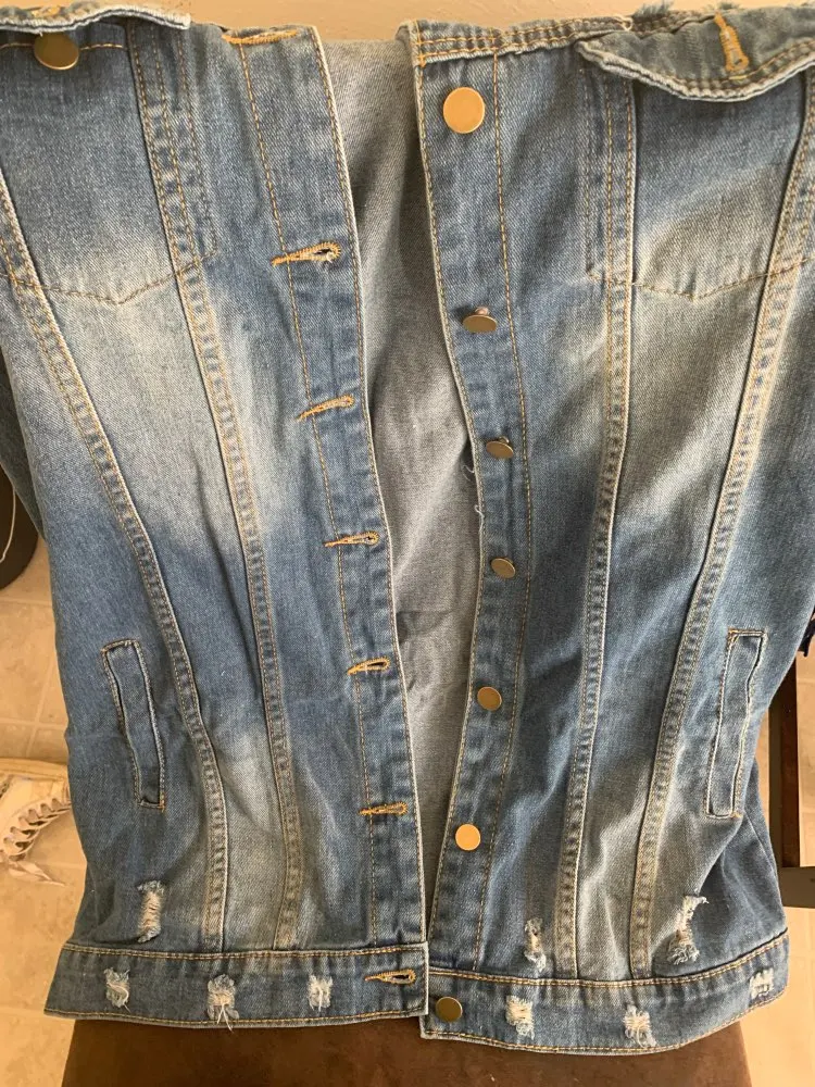 Cutest Jean jacket 1000 compliments already true to size even a little big ordered us xl could have gotten a large . Very happy fast shipping !