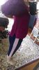 It arrived quickly, in 10 days. I ordered a size larger for a looser fit. The color is red-purple under cloudy lighting and redder in sunlight. It looks good tucked in. I'm happy with what I received!