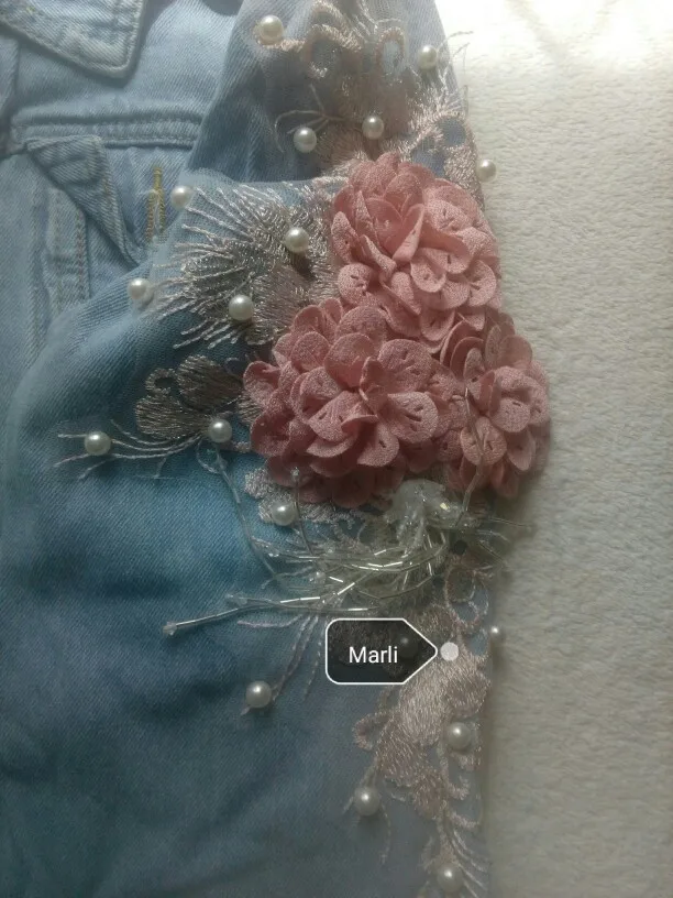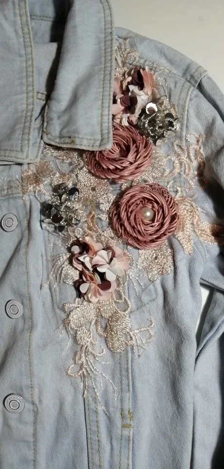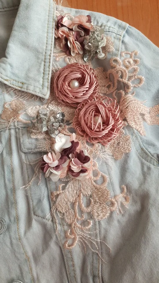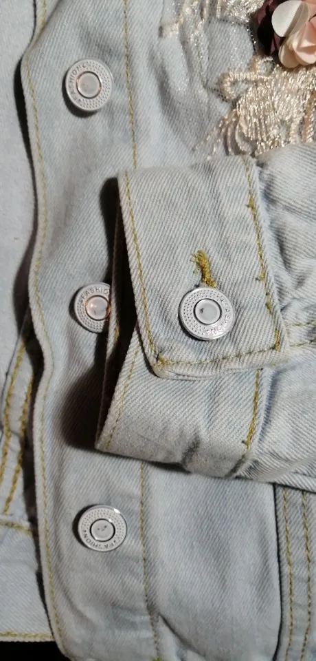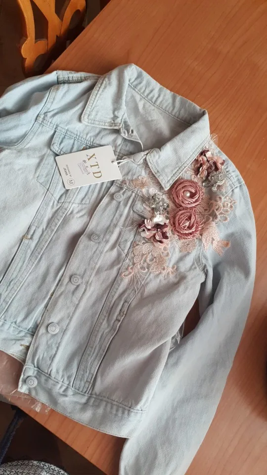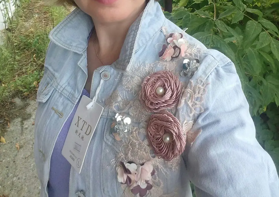 The jacket is super!!! all the seams are neat, the applique is firmly sewn, the cut is very beautiful and does not spoil the figure, there was a small smell, weathered, the color is very beautiful, has not seen such jeans for a long time
