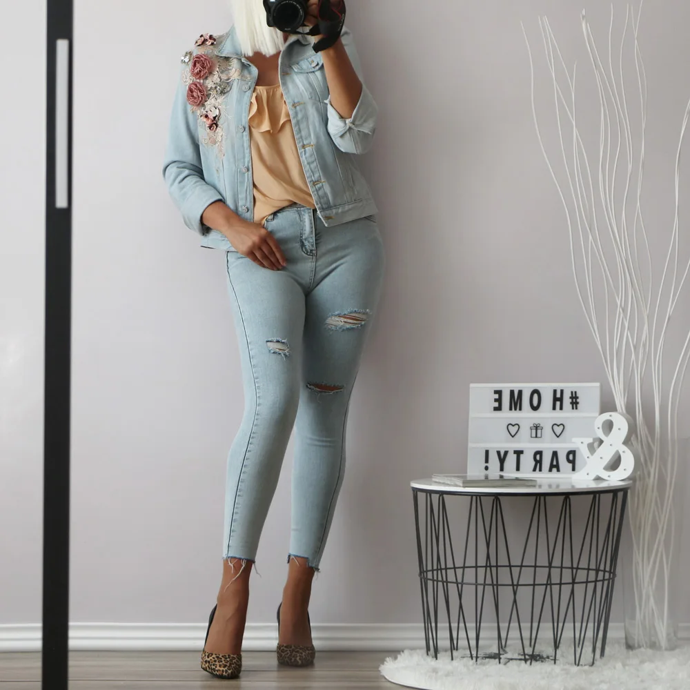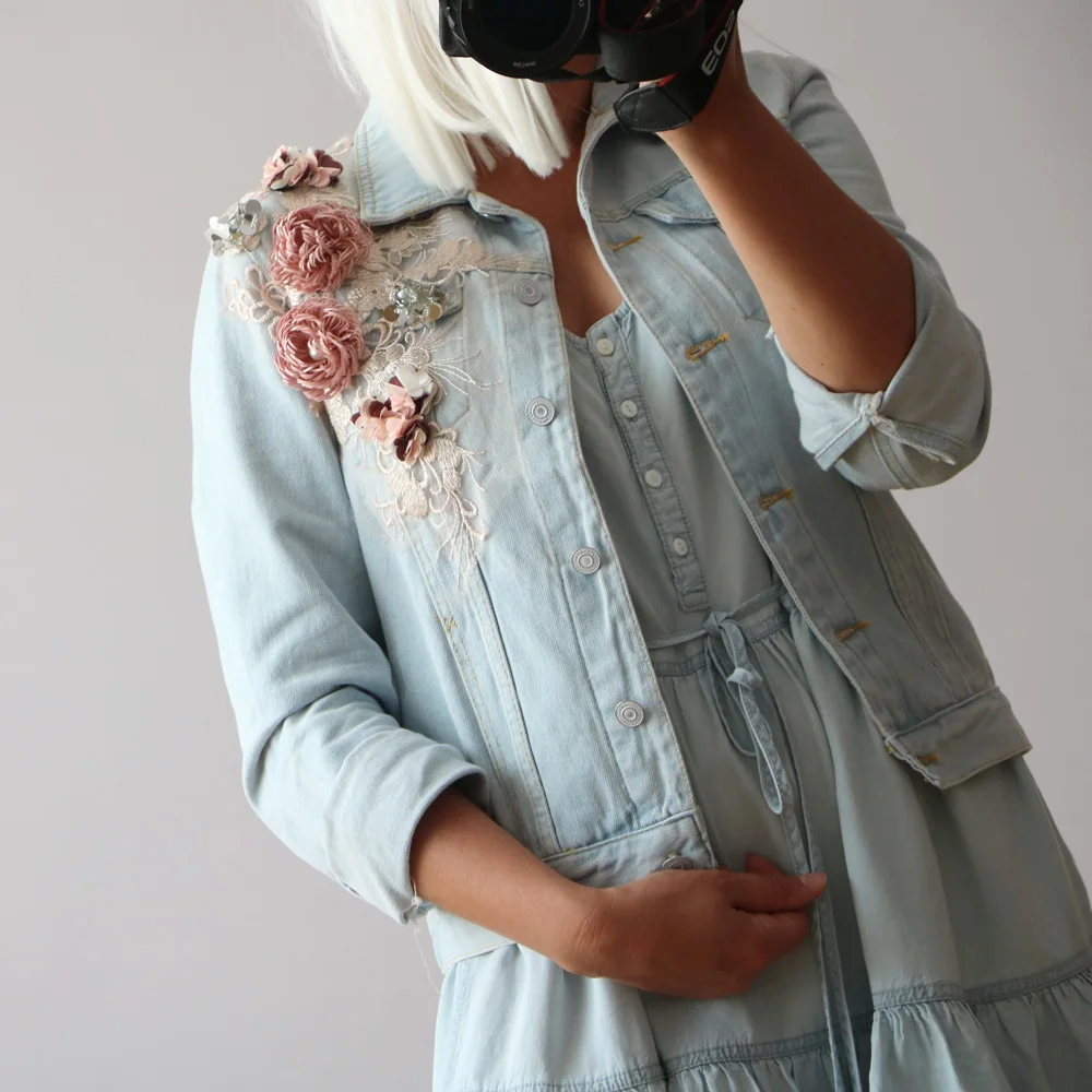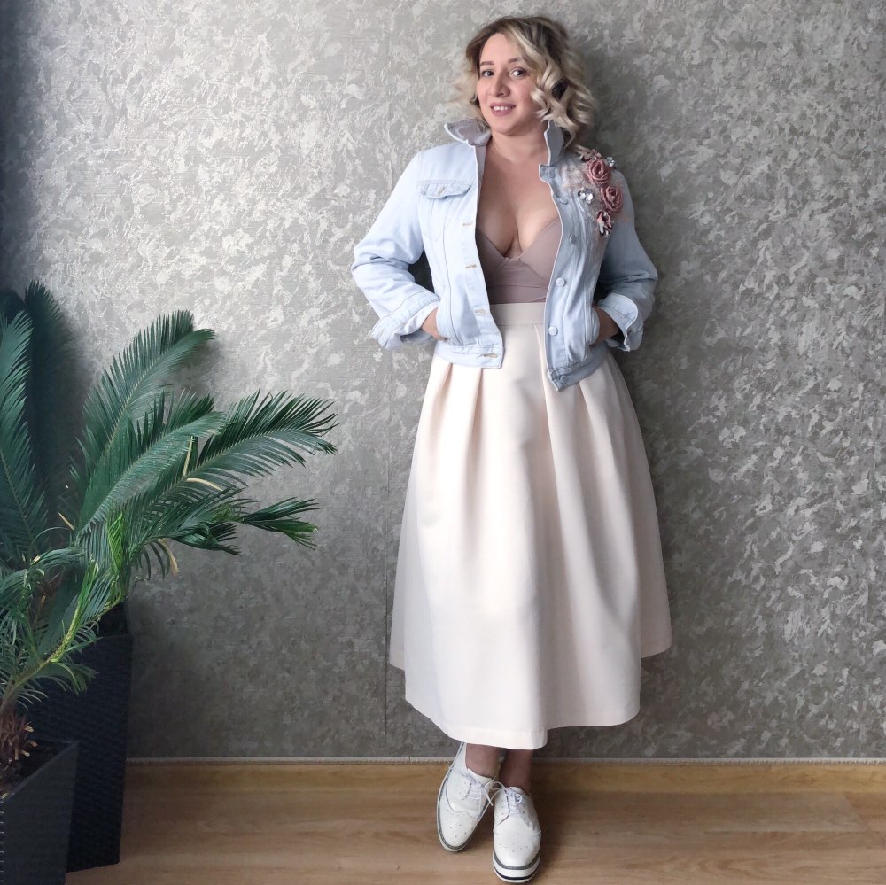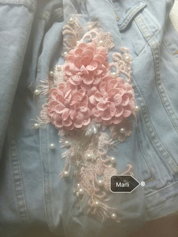 The jacket is super!!! all the seams are neat, the applique is firmly sewn, the cut is very beautiful and does not spoil the figure, there was a small smell, weathered, the color is very beautiful, has not seen such jeans for a long time