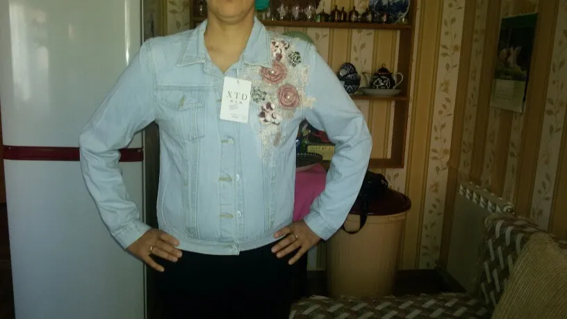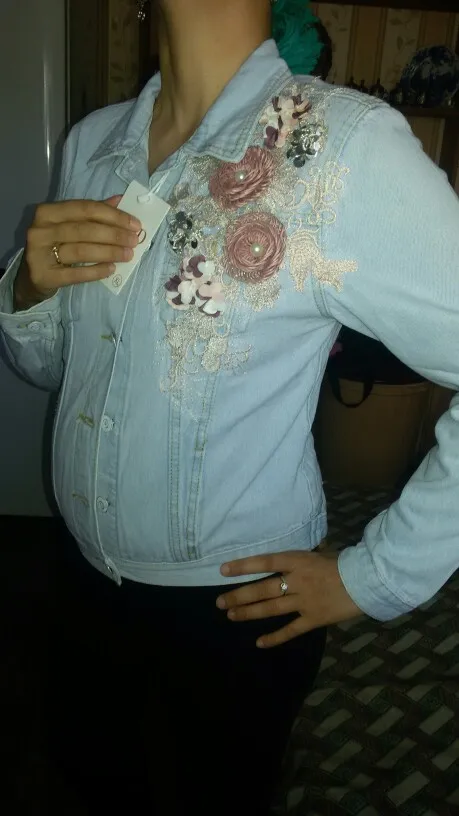 Super jacket!!!! My delight there is no limit, yes this is an ordinary denim jacket, but the applique made it cool!!! At 44 size, 88-72-98 chose the size l, sat perfectly, i can even fasten, if suddenly necessary, the terrible smell of chlorine was not, the color is light blue, the applique is sewn, threads sticking out there are of course somewhere, but this is such a nonsense, the parcel was tracked, it went to tyumen about three weeks, bought on sale with coupons for 1350r... store and goods solid 5