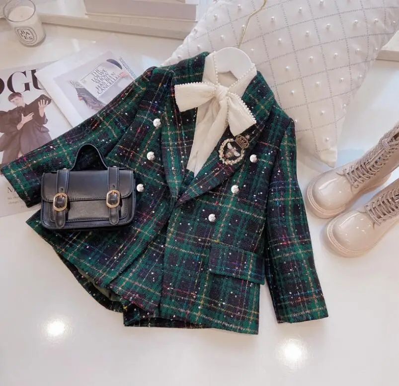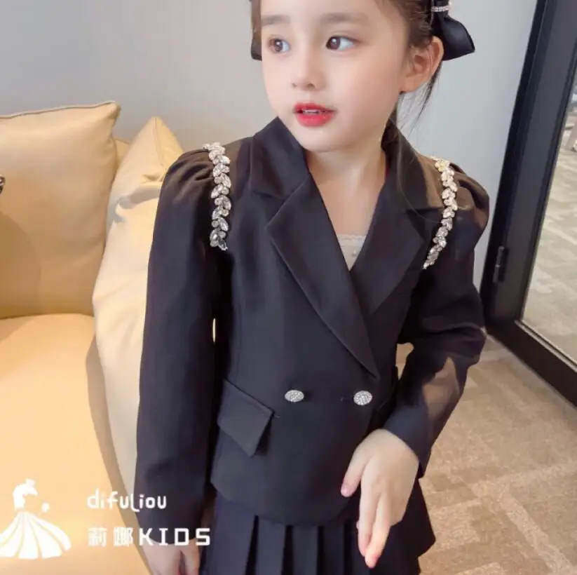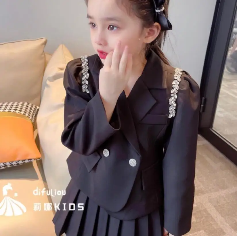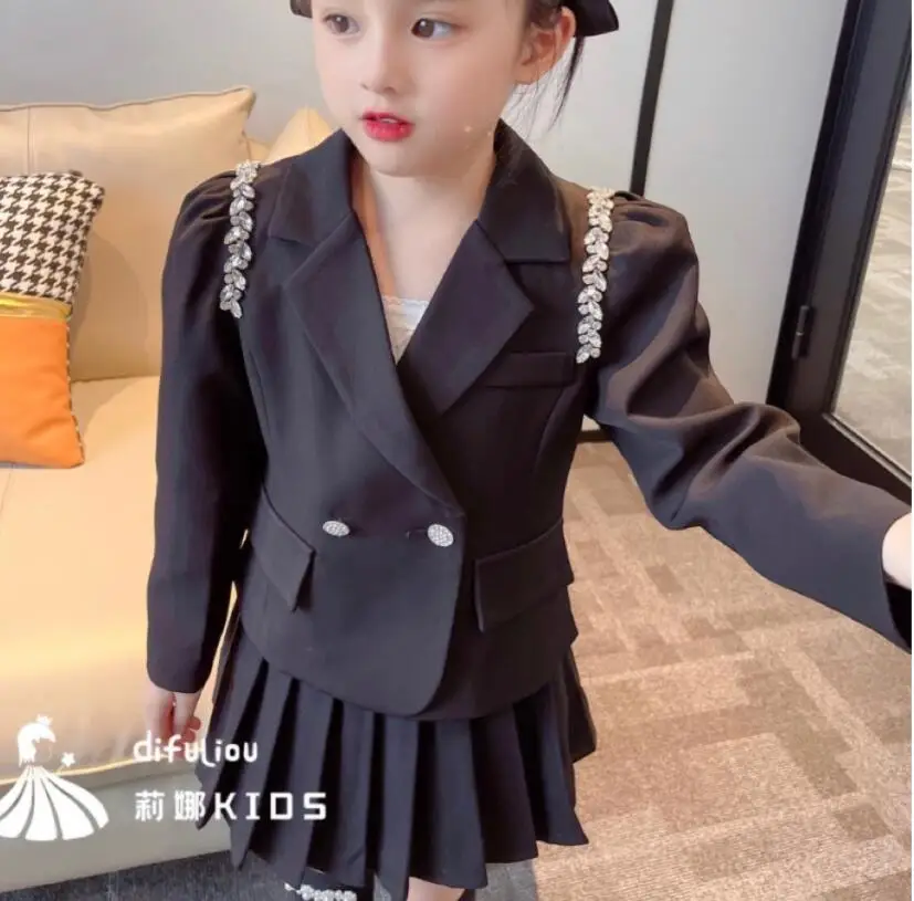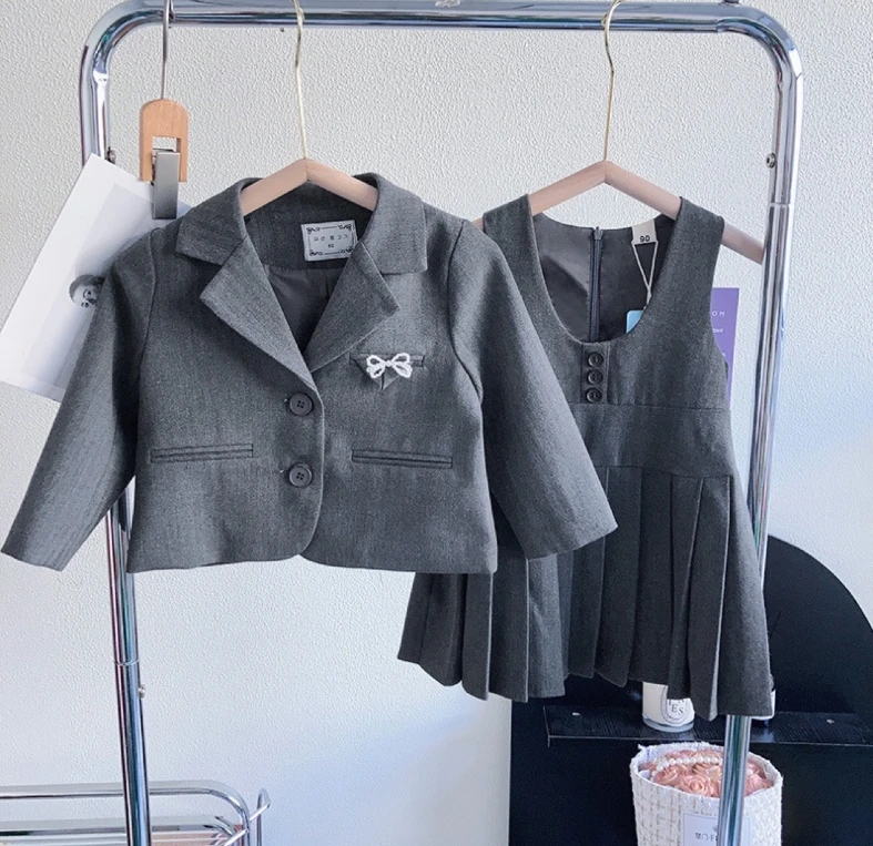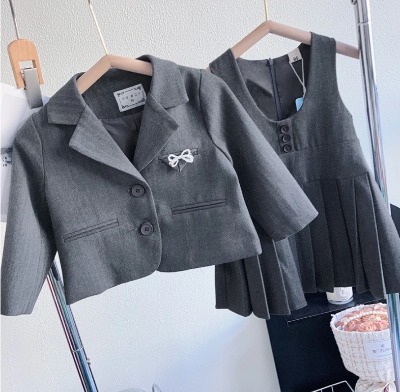FREE SHIPPING Baby Girls Boutique Formal Outfit Sets Coat And Pleated Skirts JKP6106