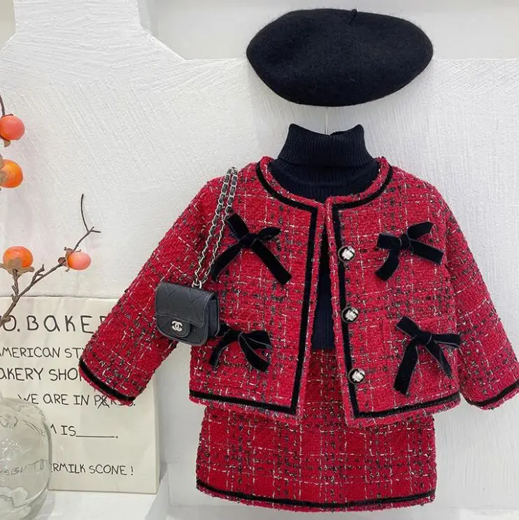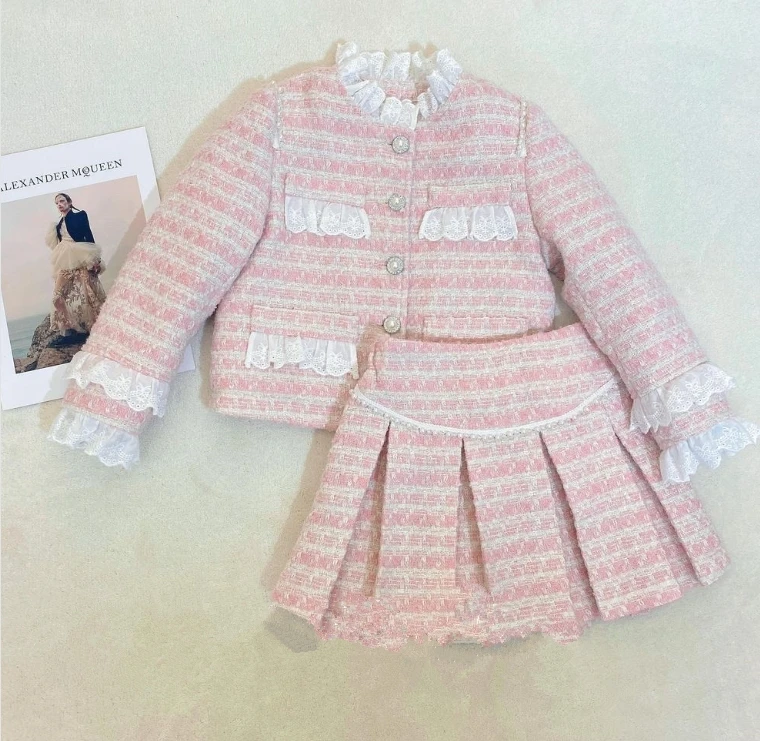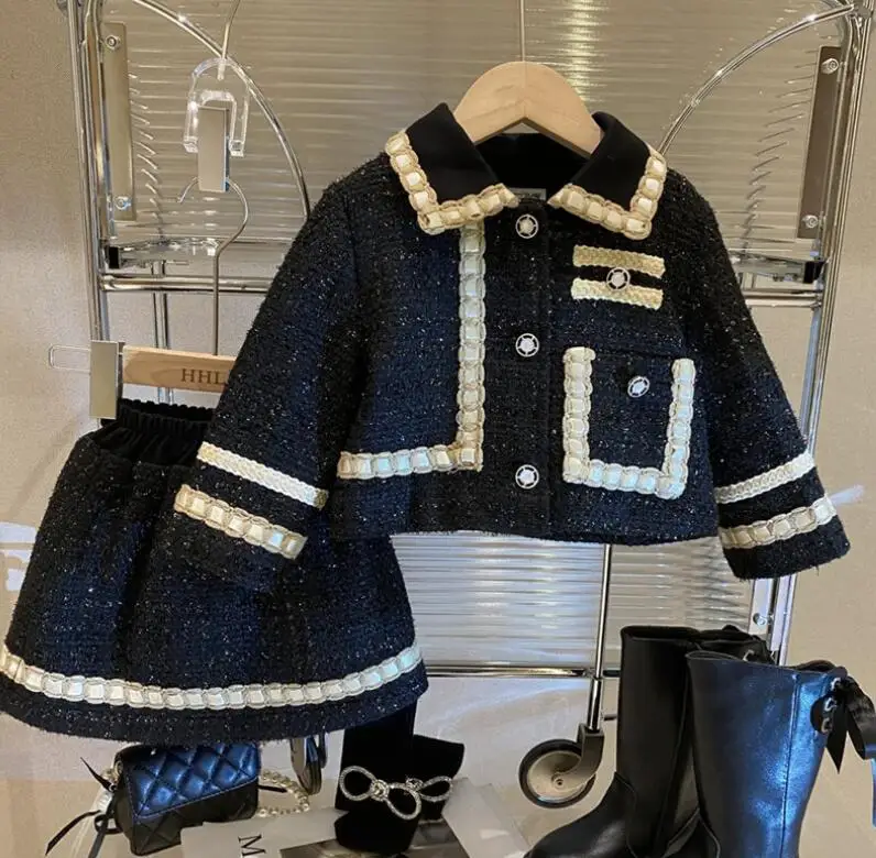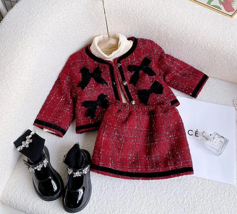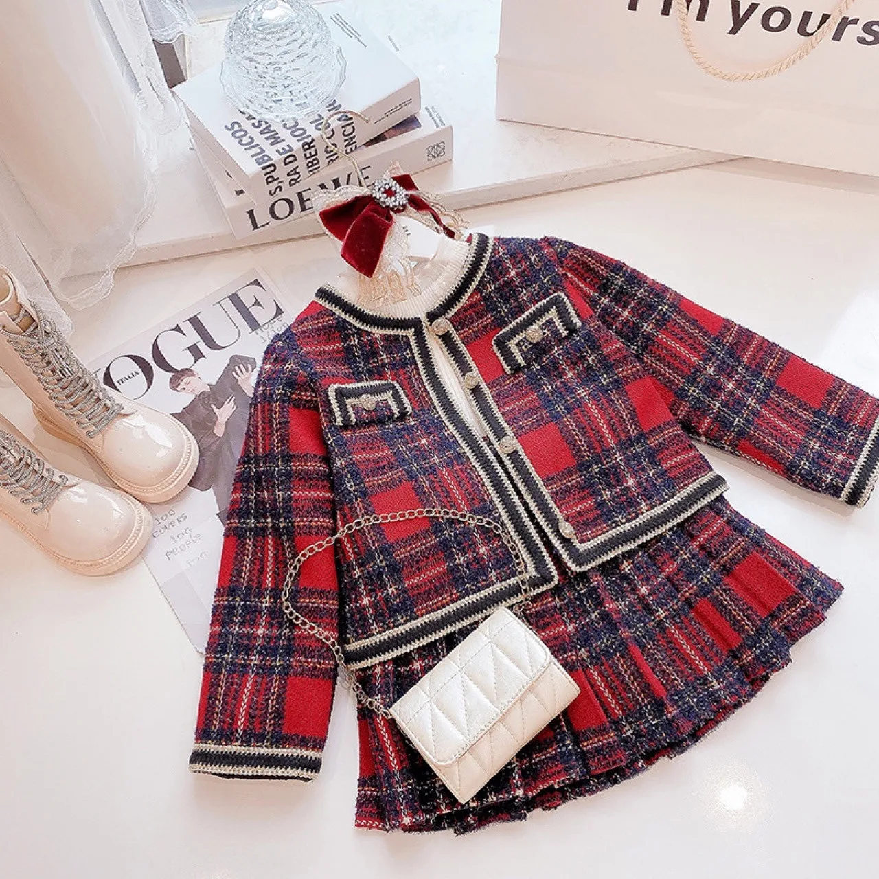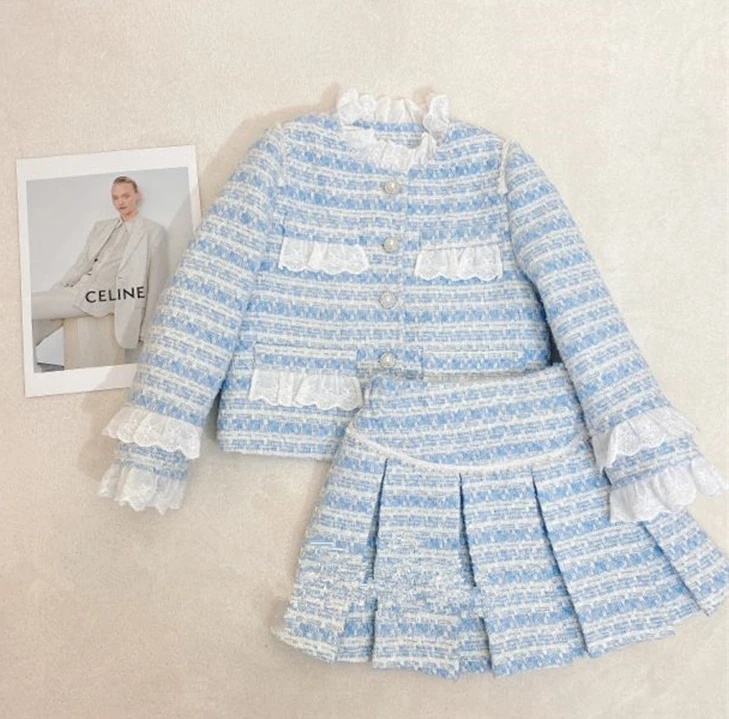 FREE SHIPPING Baby Girls Boutique Formal Outfit Sets Coat And Pleated Skirts JKP6106